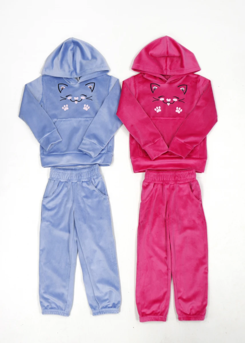 Производитель. Сезон деми. Ткань велюр. Однотонный. Брюки пояс резинка, снизу на резинках. Кофта с капюшоном, карман кенгуру, рукава и низ на резинках. Принт: Котик.