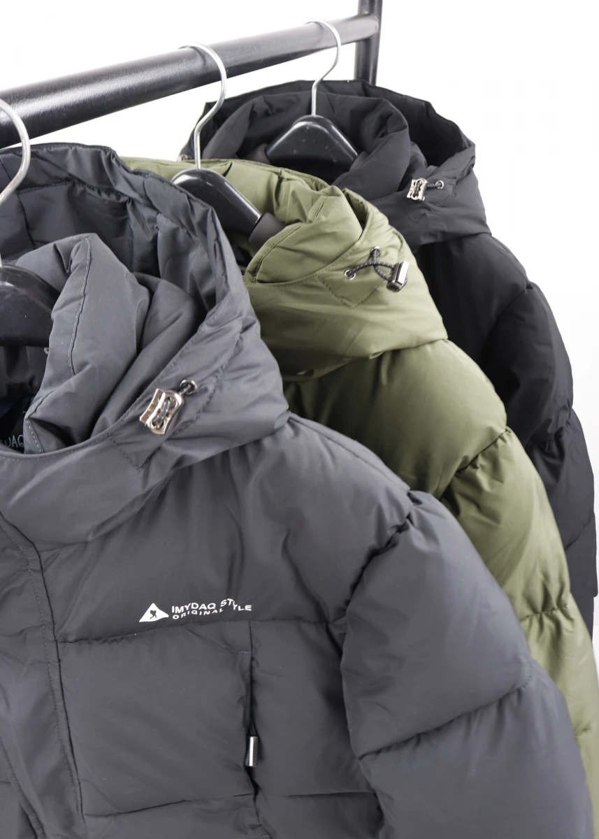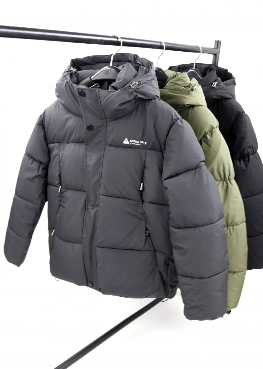 Виробник Китай. Сезон зима. Склад: поліестер 100%.Однотонна.Утеплена . Подовжена. На блискавці з накидним верхом на кнопках. Вшитий капюшон , що стягується резинкою з фіксатором.Дві бічні кишені на прихованій блискавці. Спереду ліворуч на грудині напис бренду та потайні кишені на блискавці.