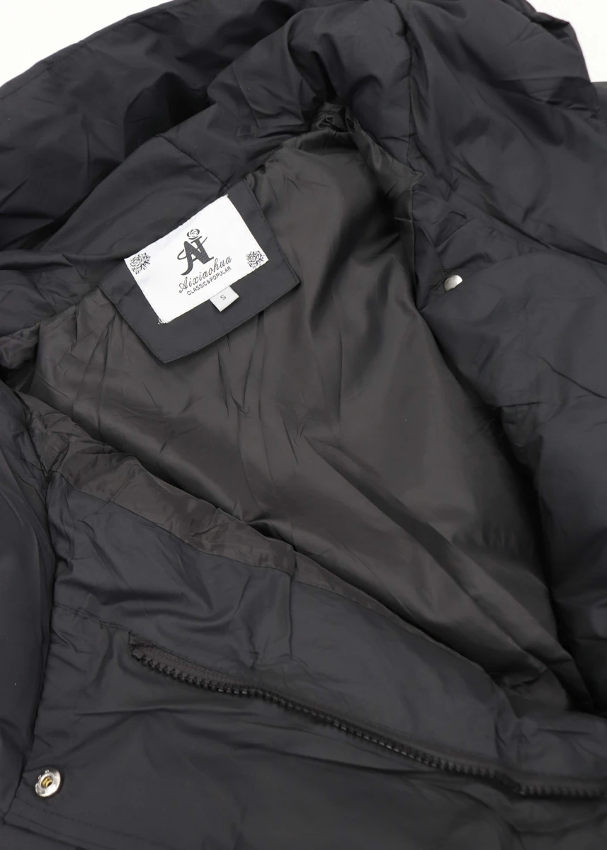Производитель: Китай. Сезон: зима. Состав: 100% полиэстер. Однотонная. Удлиненная. На молнии и кнопках. Горизонтально прошита. Капюшон сплошной. Карманы косые на кнопке. Низ стягивается шнуровкой.