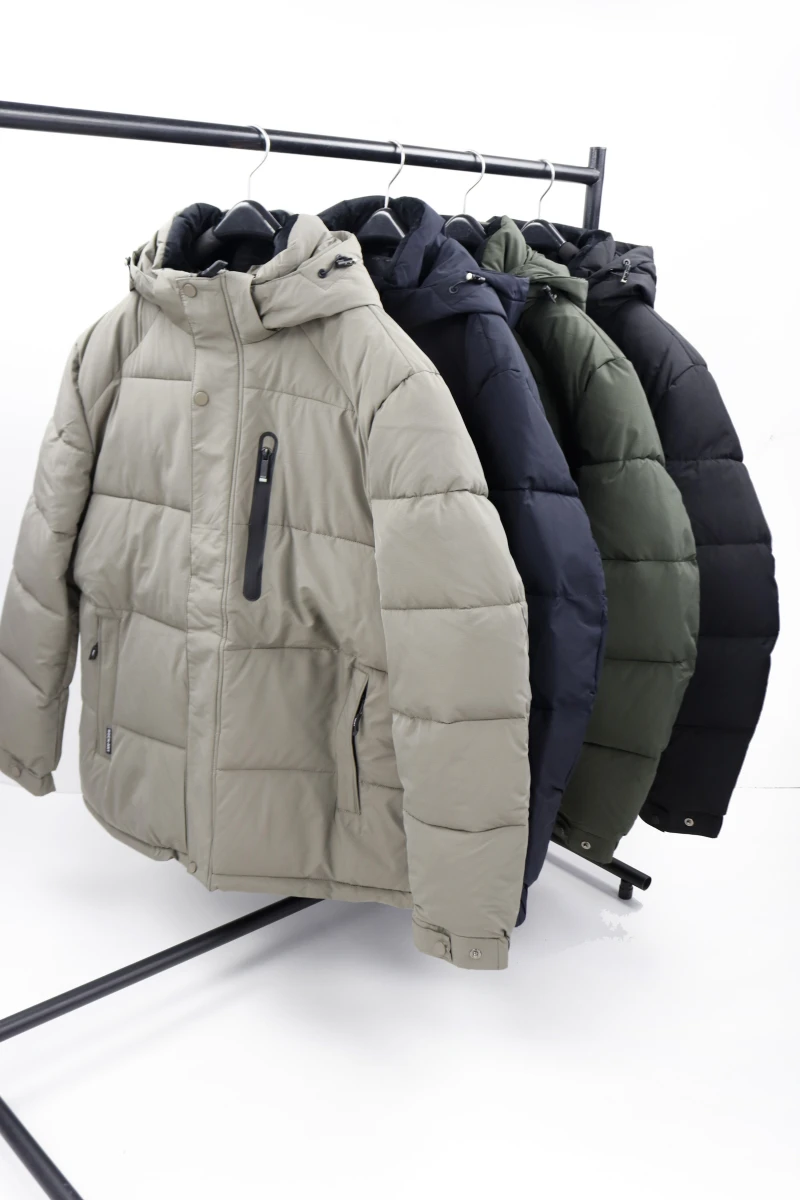 Виробник: Туреччина. Сезон: зима. Склад: 100% поліестер. Однотонна. На блискавці з накидною планкою на кнопках. З відщебним капюшоном + сягується резинкою + липучки приховані біля блискавки.Спереду кишені на блискавці прихованій планкою. Рукава на резинці + стрічка на кнопках яка зменшує об'єм. Спереду ліворуч кишеня на вертикальній прорезиненій блискавці. В середені кишеня дві кишені , одна на блискавці.