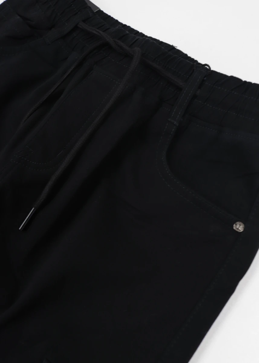 Производитель: Китай. Сезон: еврозима. Состав: 98% котон, 2% спандекс. Пояс резинка+шнуровка. Имитация ширинки. Карманы сверху и накладные карманы на колошвах по бокам, сзади имитированы карманы с пуговицей. Низ на резинке.