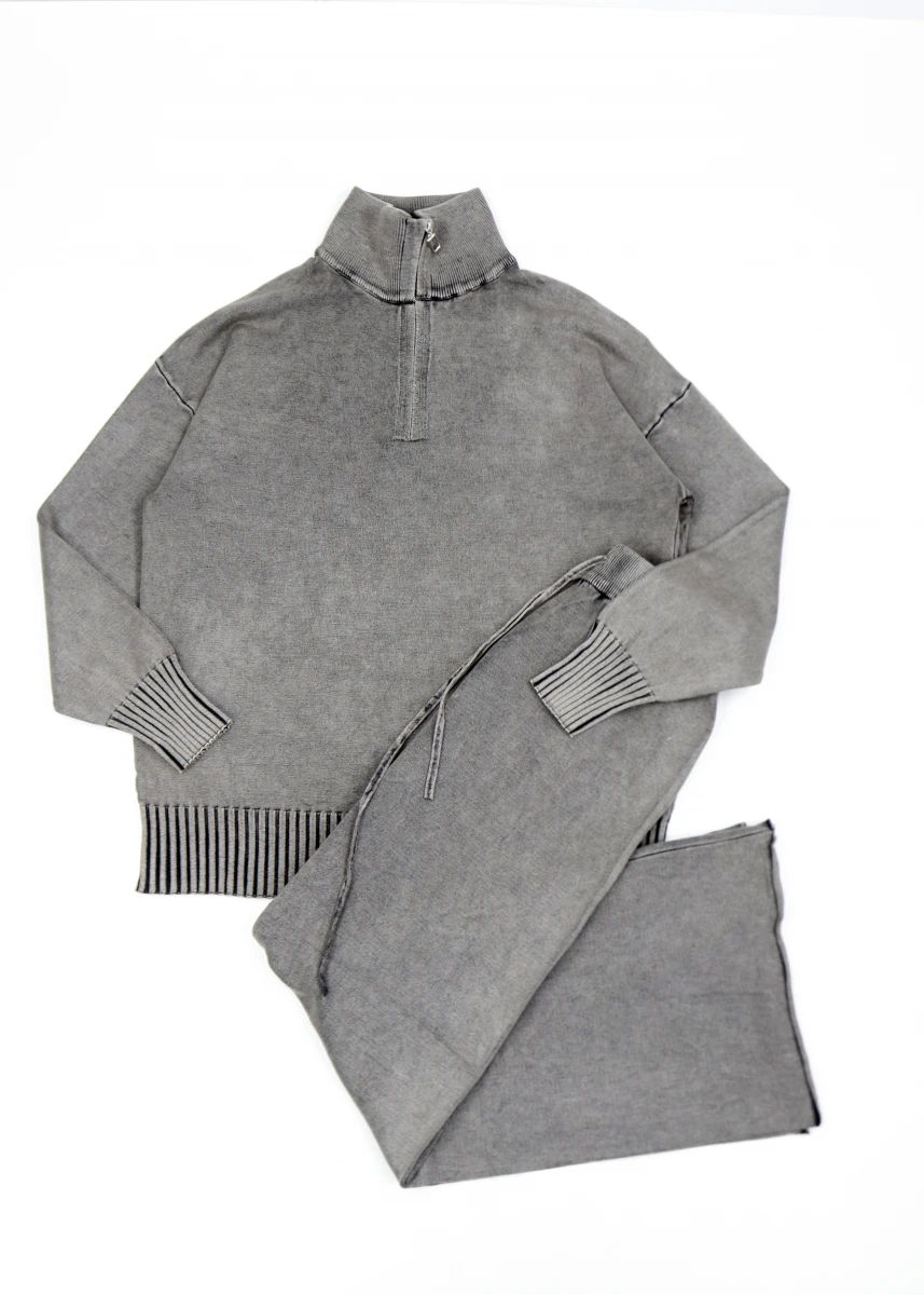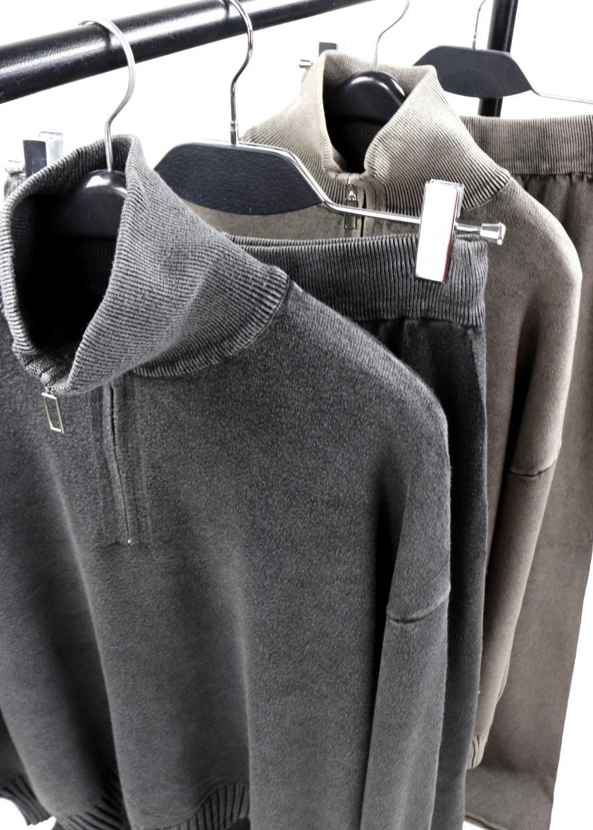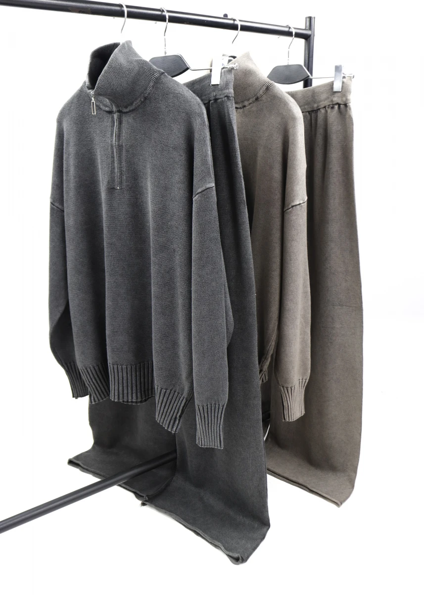 Производитель Китай. Сезон деми. Однотонный. Мелкая вязка. Кофта+штаны. Кофта: воротник стойка на молнии, оверсайз, Рукав регланом на манжете, низ обвернутый завернутый. Брюки: резинка со шнуровкой, поктий кюлотами, обрезной низ завернутый.