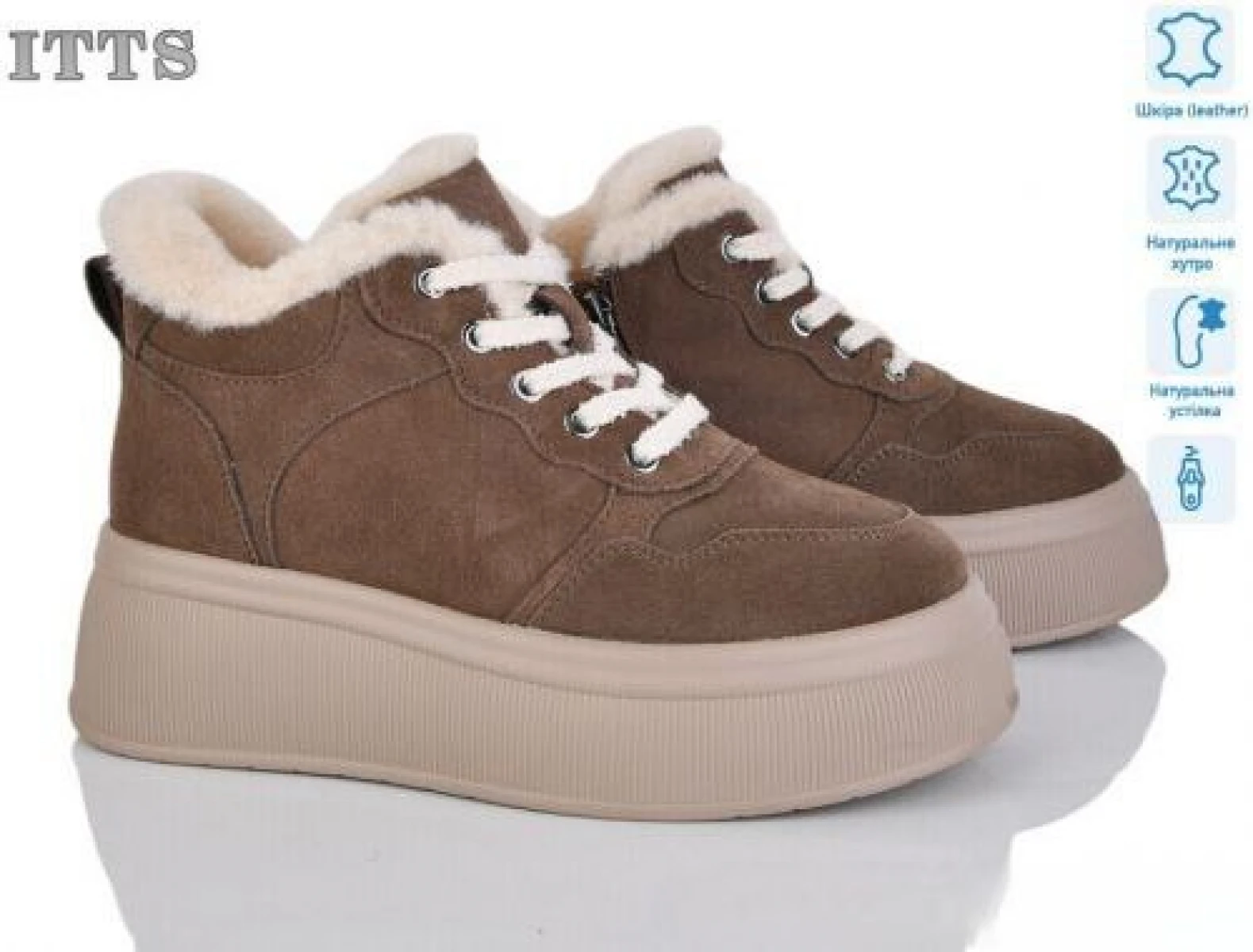 Производитель Китай. Сезон зима. Материал верха натуральный замш. Материал подкладки и стельки натуральный мех. ПВХ подошва. Модель на молнии и шнуровке. Петелька на заднике.