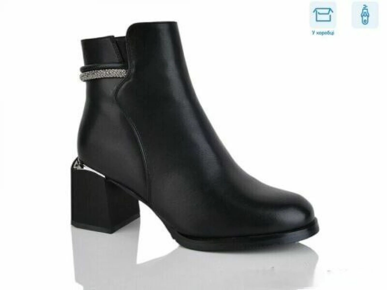 Производитель Китай. Сезон зима. Материал верха экокожа. Материал подкладки и стельки искусственный мех. Модель на застежке молнии, украшенная стразами.