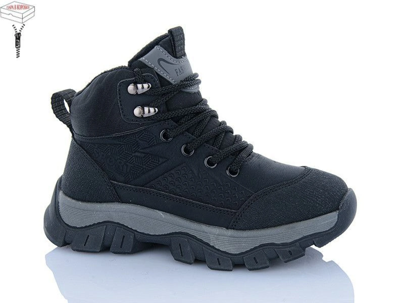 Производитель Китай. Сезон зима. Материал верха экокожа и текстиль. Материал стельки и подкладки искусственный мех. ПВХ подошва. Модель на молнии и шнуровке.