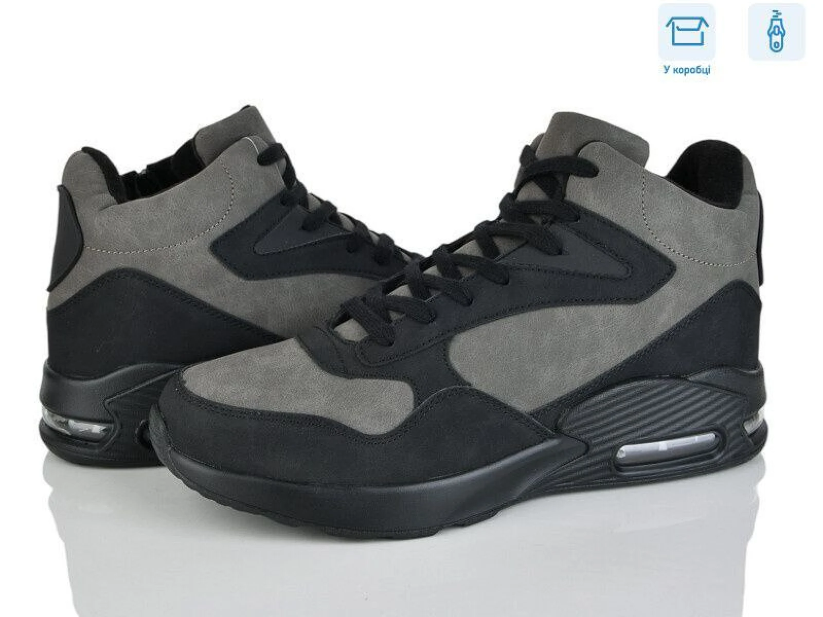 Производитель Китай. Сезон зима. Материал верха — искусственный нубук. Материал подкладки и стельки искусственный мех. ПВХ подошва. Модель на молнии и шнуровке.