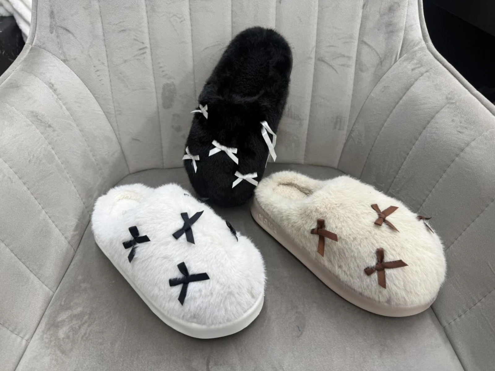 Производитель Китай. Сезон зимы. Материал изделия искусственный мех. Фигурная подошва ПВХ. Модель украшена декоративными бантами.