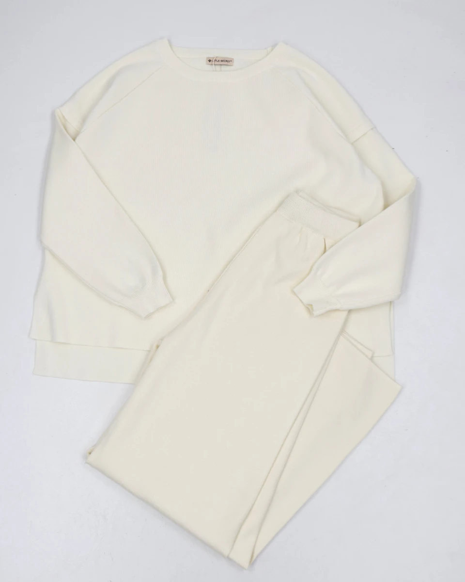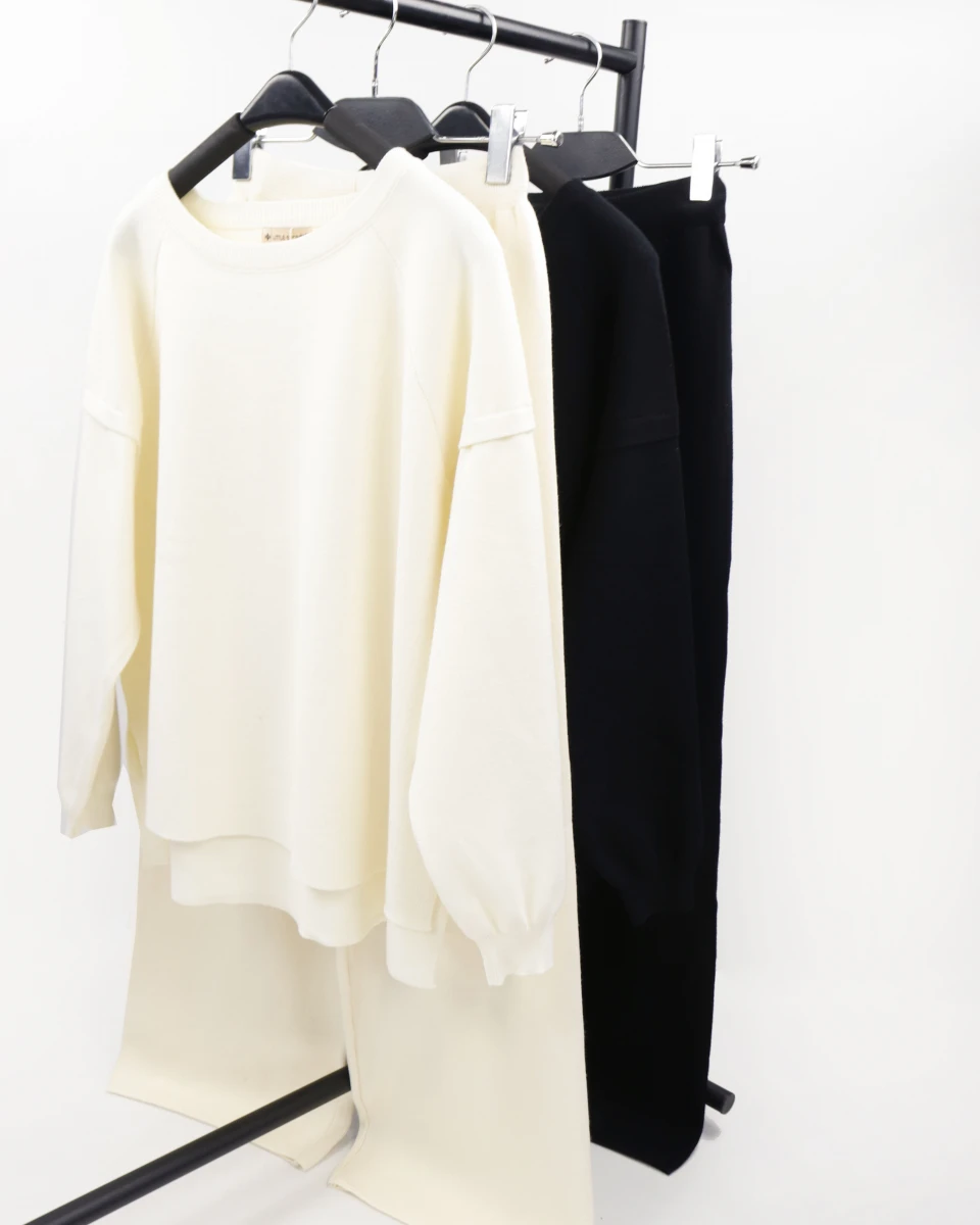 Производитель Китай. Сезон деми. Кофта+штаны. Кофта – круглая горловина, покрой рукава регланом, передняя часть кофты короткая, задняя часть удлиненная, по бокам разрезы. Брюки пояс резинка, покрой кюлотами.