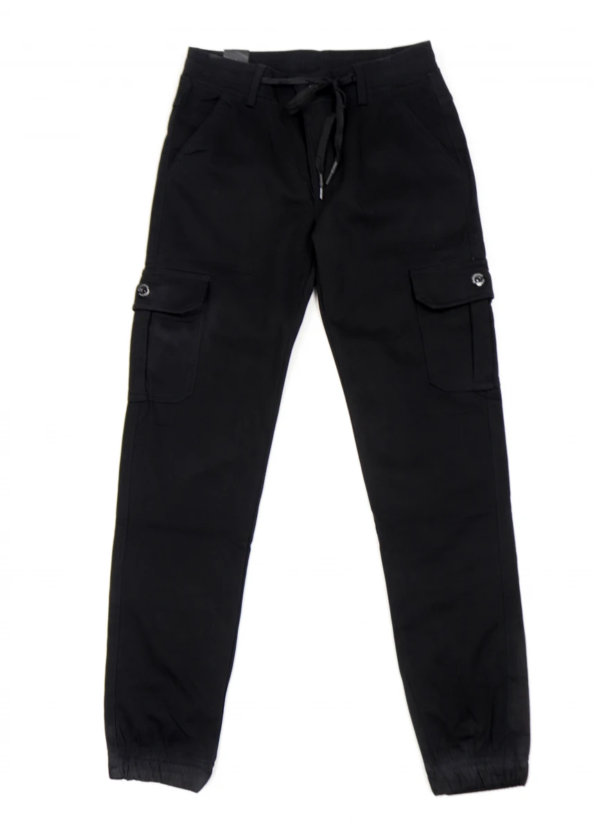 Производитель: Китай. Сезон: зима. Состав: 97% хлопок, 3% лайкра. Пояс и низ на резинке. Спереди косые и боковые нашивные карманы.
