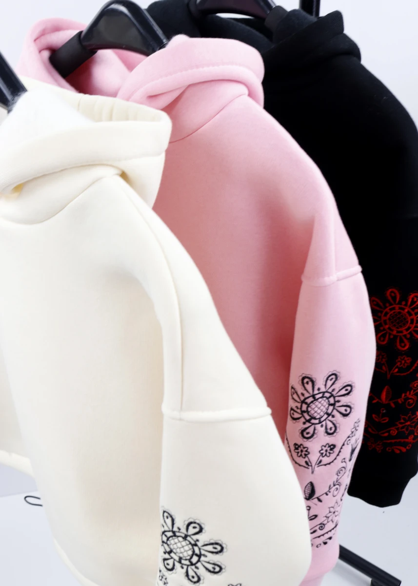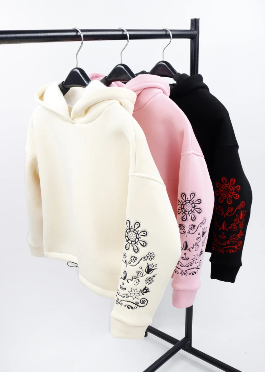 Производитель: Украина. Сезон: зима. Состав: 80% хлопок, 20% полиэстер. Однотонная. С капюшоном. Оверсайз. Рукава на манжете. Низ стягивается резинкой с фиксатором спереди. Рукава декорированы вышивкой.