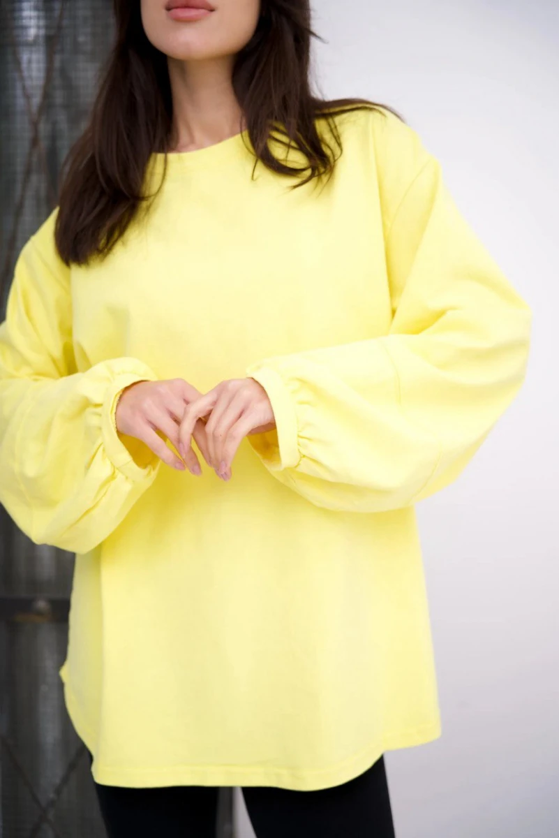 Производитель: Турция. Однотонный. Горловина круглая. Прямая. Низ и бока округлены. Рукав фонарик на манжете, снизу прошитый.