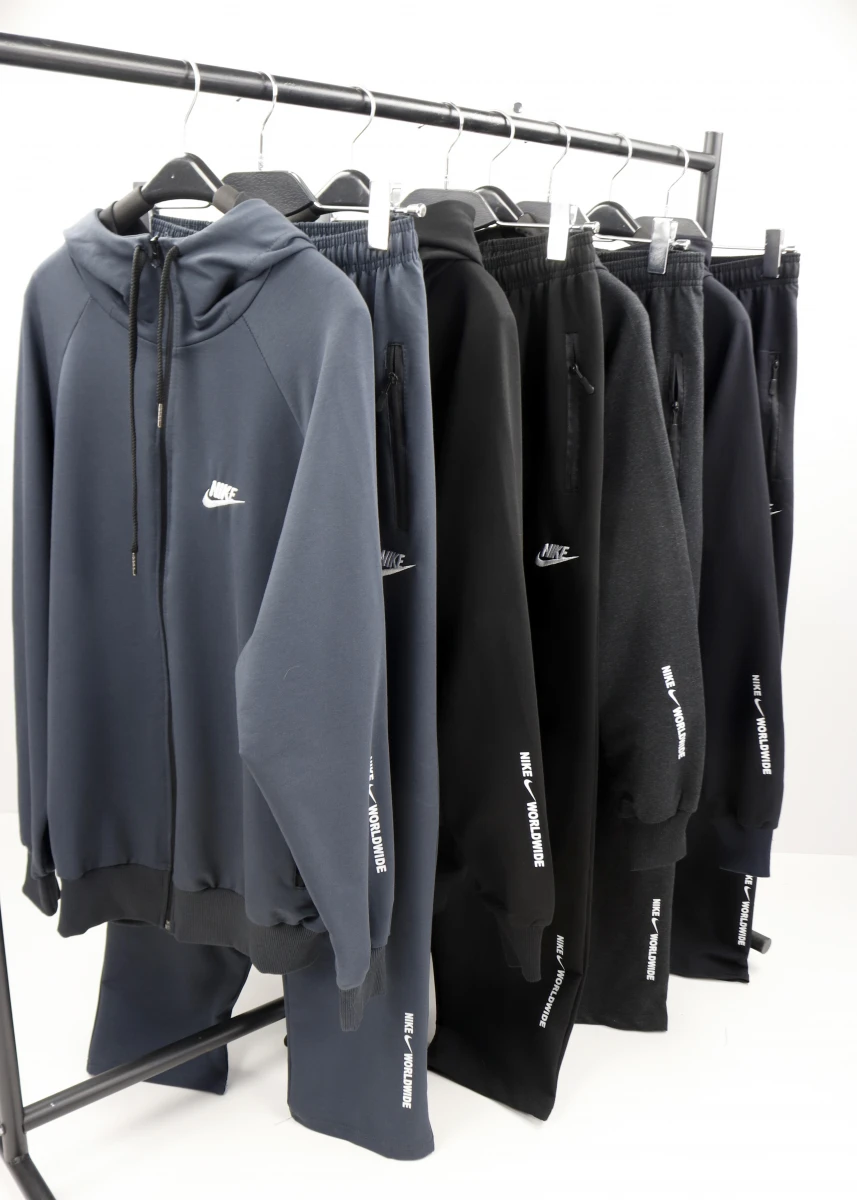 Производитель: Китай. Сезон: деми. Однотонный. Толстовка+штаны. Толстовка: на молнии. С капюшоном + стягивающаяся шнуровка. Два кармана на молнии. Рукава и низ на манжете. Спереди Декорированный вышитым логотипом и надписью nike и на правом рукаве декорированный надписью. Брюки: пояс на резинке + внутренняя шнуровка. Прямые. Два кармана на молнии. Под левым карманом вышитая надпись и логотип nike, и снизу надпись NIKE WORLDWIDE.