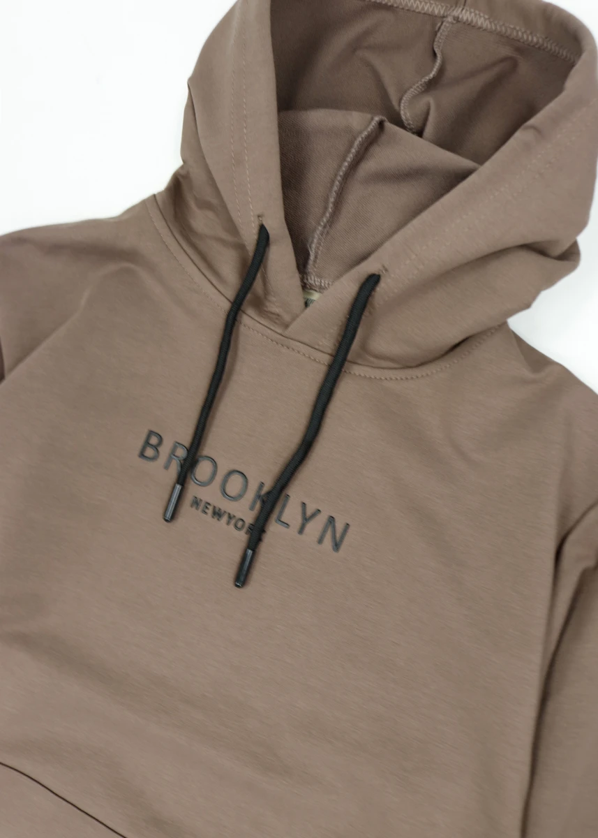 Виробник Туреччина. Сезон зима. Склад: 95% бавовна, 5%лайкра Капюшон на завязках. Кишеня кенгуру. На манжетах. Спереду написи.