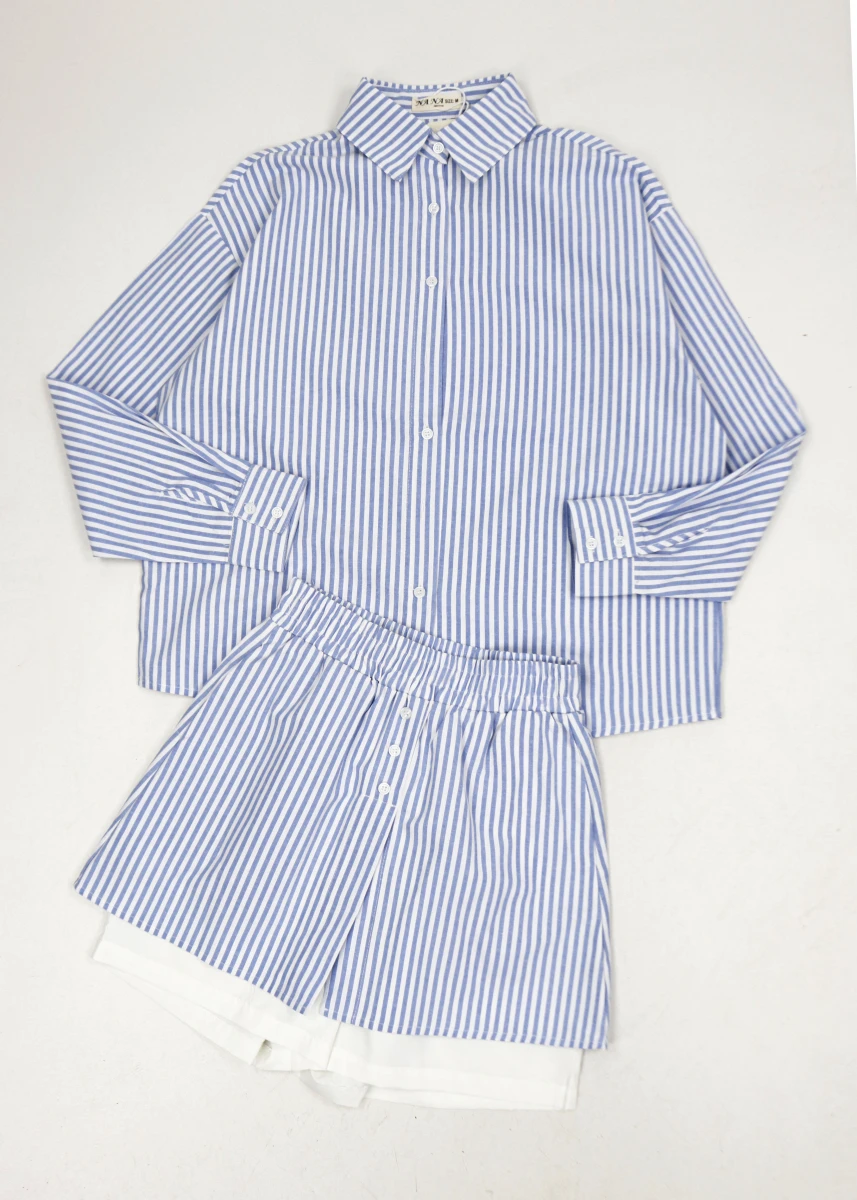 Производитель: Китай. Сезон:лето. Состав: 95% хлопок, 5% полиэстер. Рубашка и юбка-шорты.