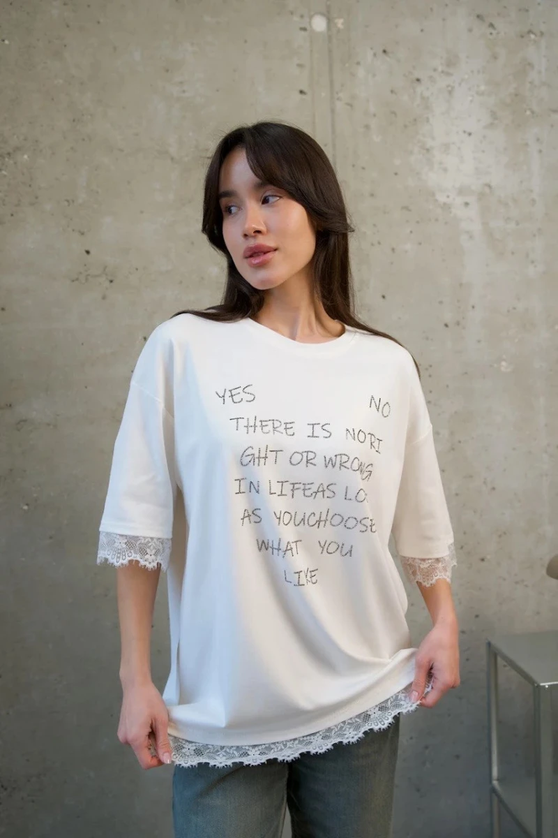 Производитель: Турция. Сезон:лето. Однотонная. Круглая горловина. Рукава и низ декорированы кружевом.