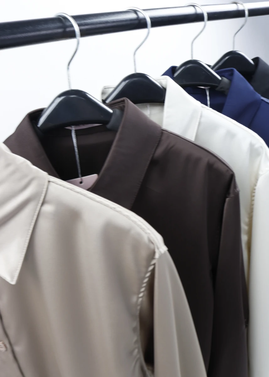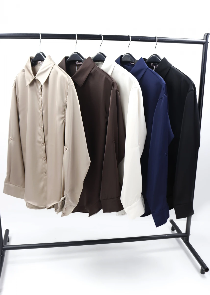 Производитель: Китай. Сезон: деми. Ткань атлас. Однотонная. Воротник стойка. На пуговицах. Рукав: длинный, широкий манжет на 2-х пуговицах. Низ полу-овальный, сзади удлиненный.