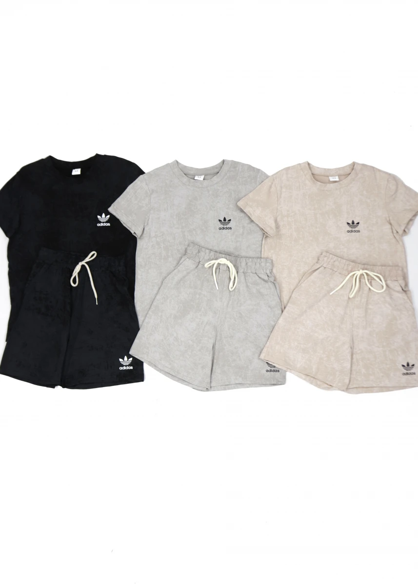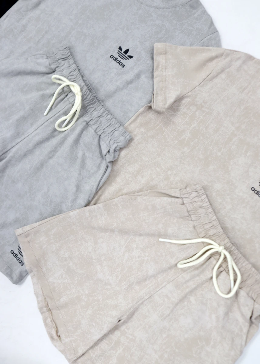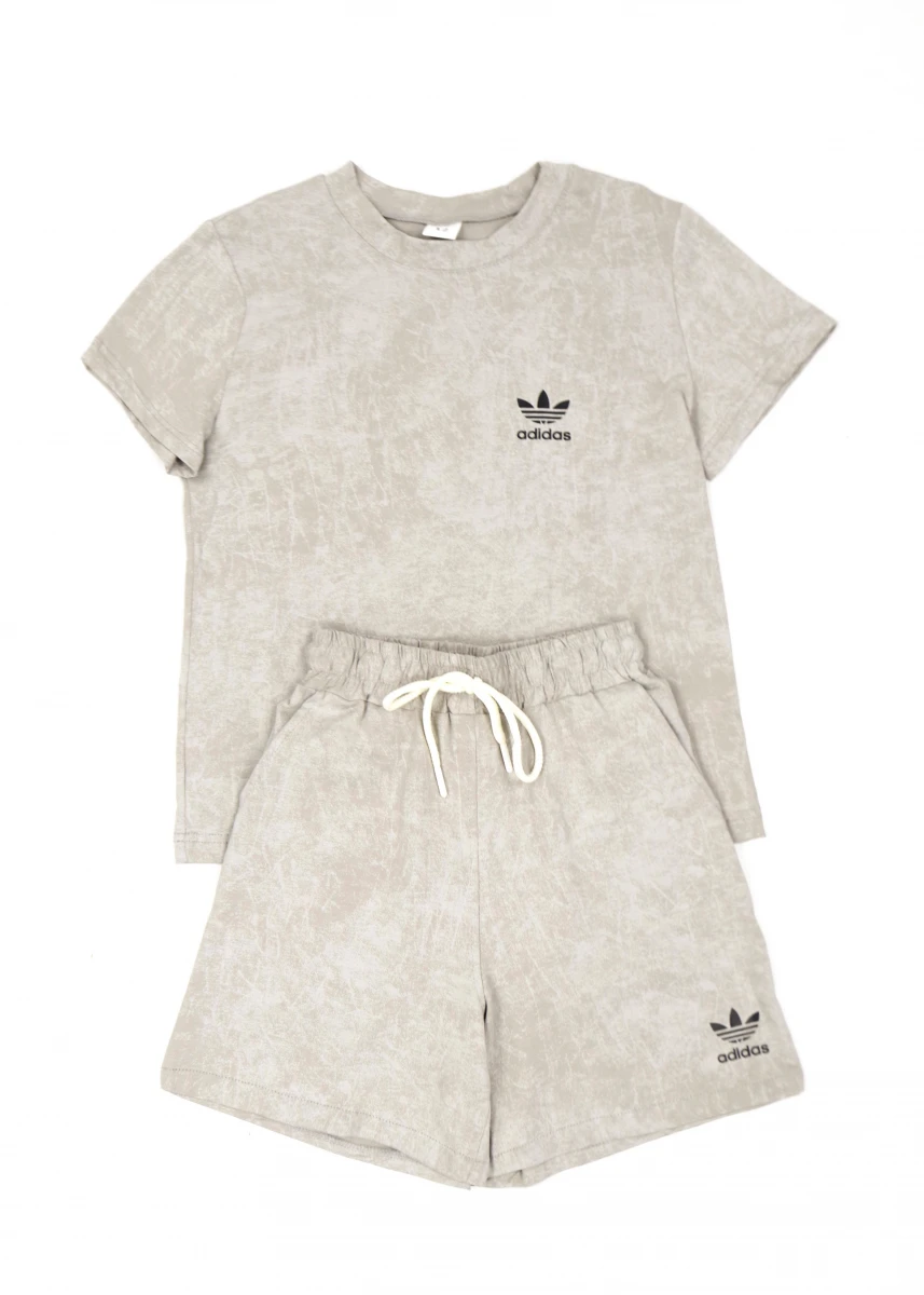 Производитель: Турция. Сезон:лето. Состав: 80% хлопок, 15% полиэстер, 5% лайкра. Однотонный. Футболки и шорты. Футболка: классическая, круглая горловина, слева надпись: (adidas). Шорты: пояс на резинке со шнуровкой, два костных кармана, слева надпись: (adidas).
