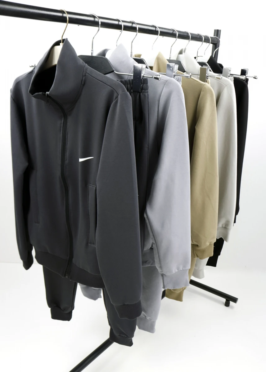 Производитель: Турция. Сезон: деми. Состав: 95% хлопок, 5% лайкра. Однотонный Толстовка+штаны.Толстовка: на молнии. Воротник стойка. Рукава и низ на манжете. Два кармана на молнии. Сзади декорирован надписью JUST DO IT. Брюки: пояс на резинке+ стягивающаяся шнуровка. Два кармана на молнии. Под правым карманом логтип бренда NIKE. Низ колосьев на манжете.