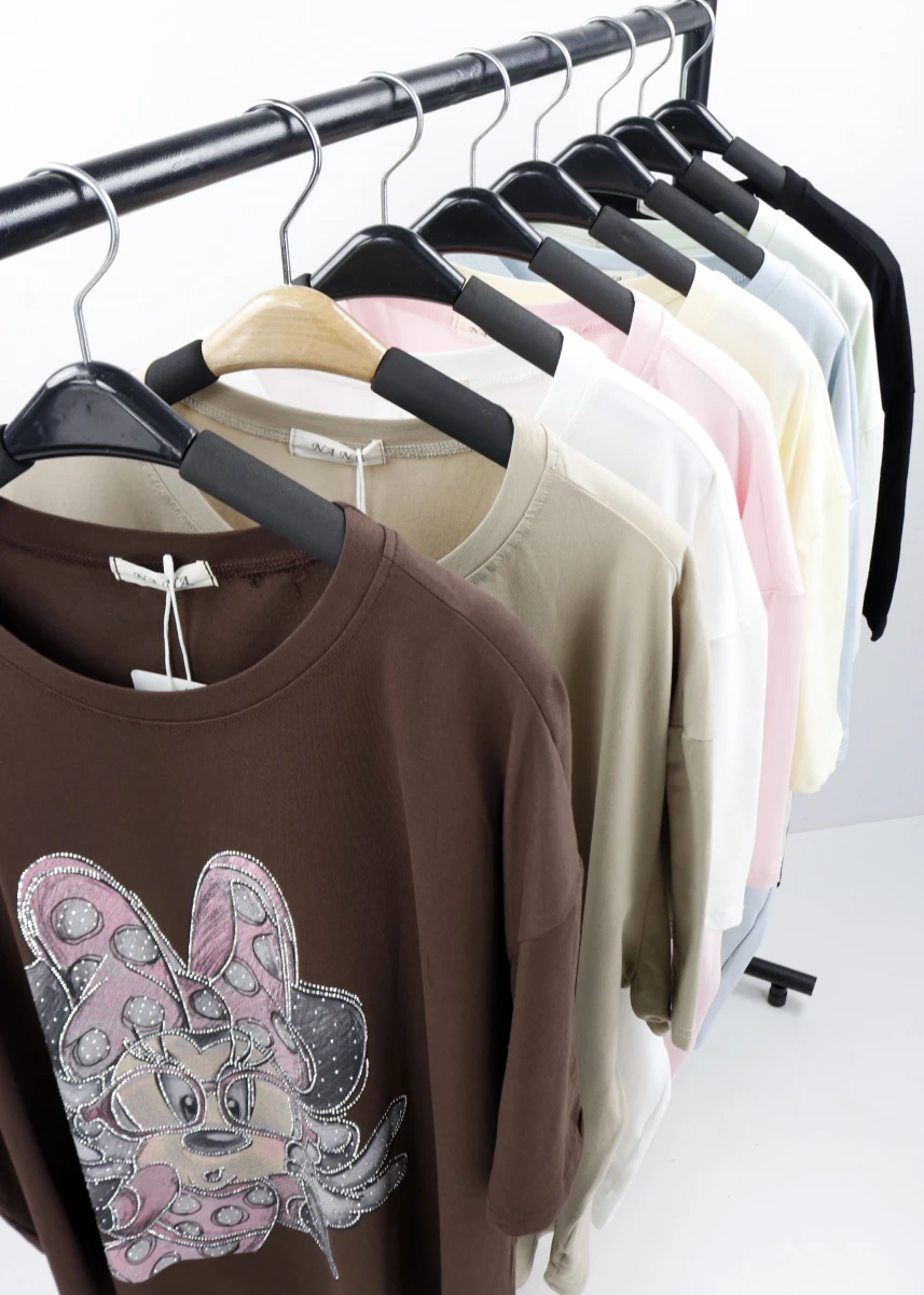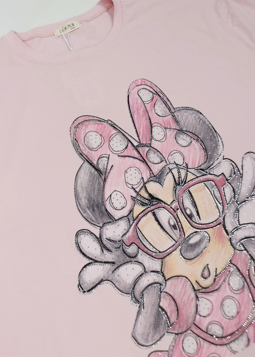 Производитель: Китай. Сезон: лето. Состав: коттон 95%, полиэстер 5%. Онотонное. Круглая горловина. Спереди принт декорирован в камешки.