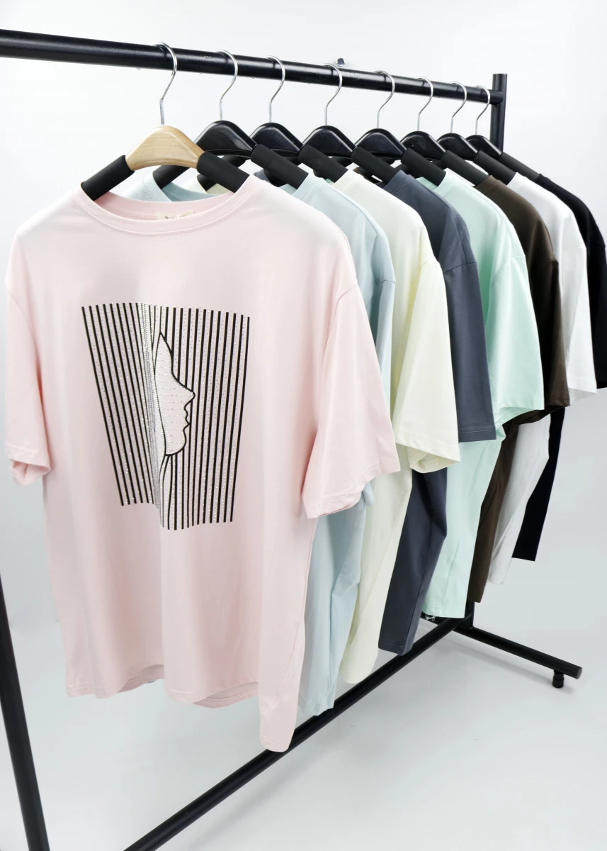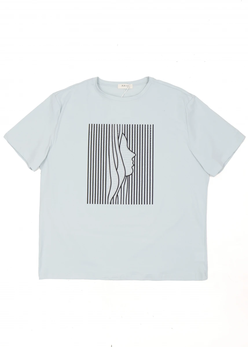 Производитель: Китай. Сезон: лето. Состав 95% котон, 5% полиэстер. Круглая горловина. Спереди принт декорирован в камешки.