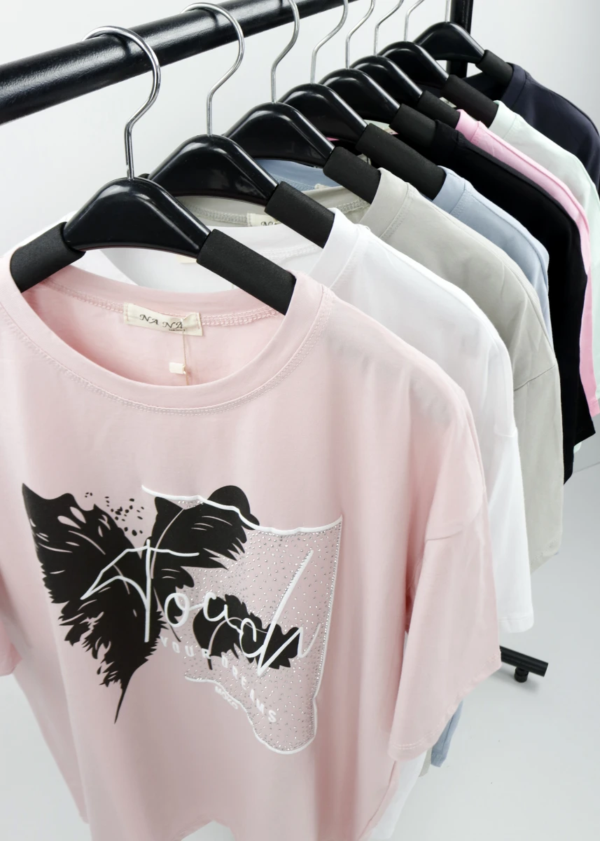 Виробник: Китай. Сезон: літо. Склад: 95% бавовна, 5% поліестер. Однотонна. Кругла горловина. Спереду декорована різними написами та стразами.