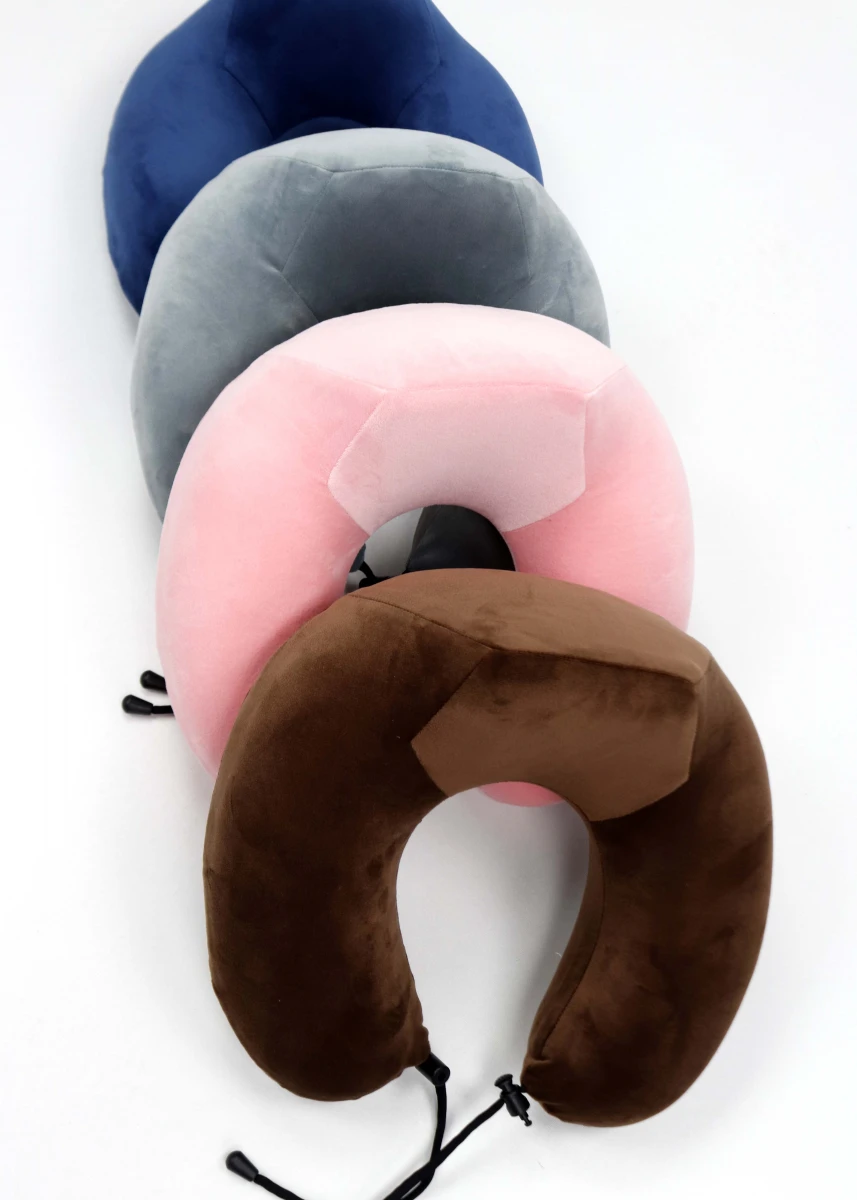 Виробник Китай. Подушка під шию. Круглої форми з підвищеним підголівником. Велюровий чохол, який знімається і застібається на блискавку, по боках вшиті шнурівки з регулятором довжини.