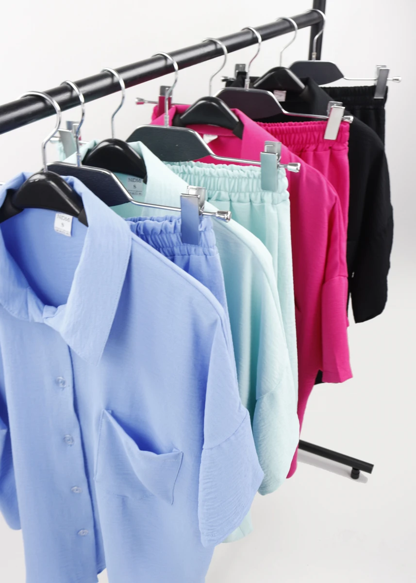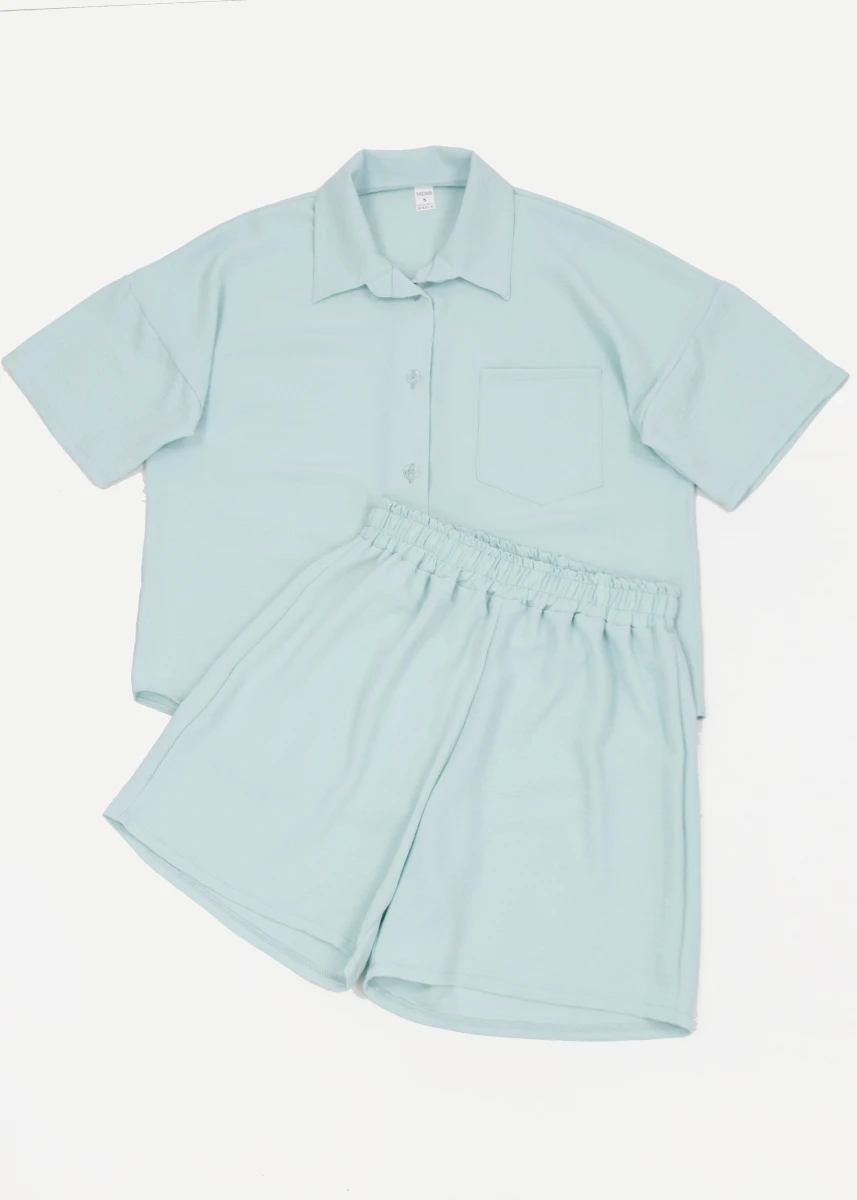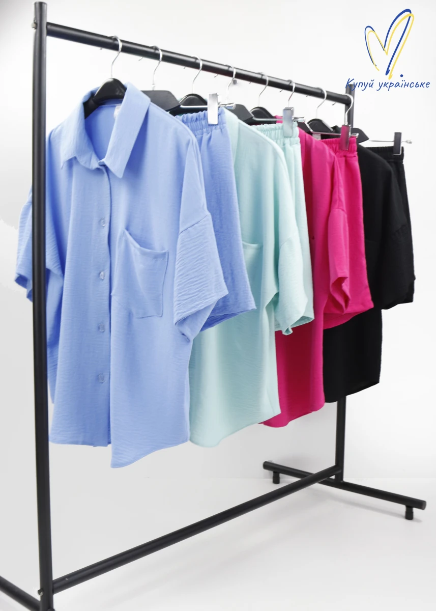 Виробник: Україна. Сезон: літо. Шорти + сорочка. Однотонний. Шорти: на резинці. Сорочка: застібається на гудзики, ліворуч нашивна кишеня. Короткий рукав.