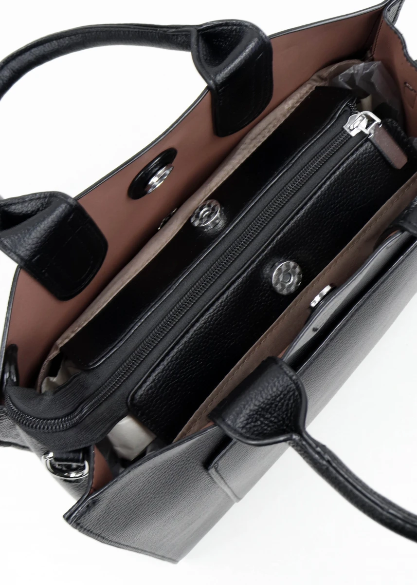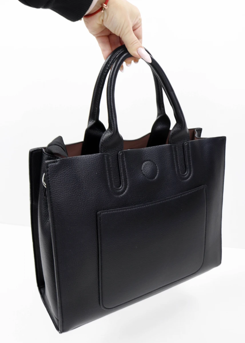 Виробник: Китай. Сезон: демі. Екошкіра. Однотонна. Три відділи два бокових на кнопках, середній на блискавці. В серединьому кишеня на блискавці та нашивна кишеня. Підшиті короткі ручки + довгий регулюючий ремінець. Спереду нашивна кишеня на магніті. Ззаду нашивна кишеня. Дно має 4 металевих підставки.