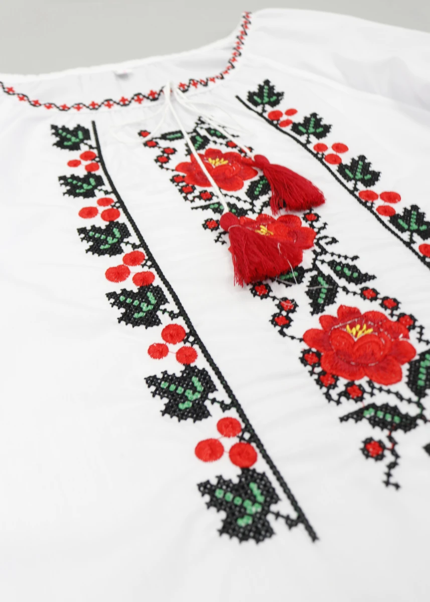 Виробник Україна. Сезон демі. Вишиванка вільного пошиву. Спереду і на рукавах вишивка.