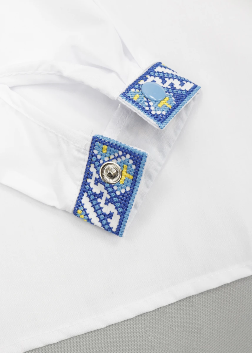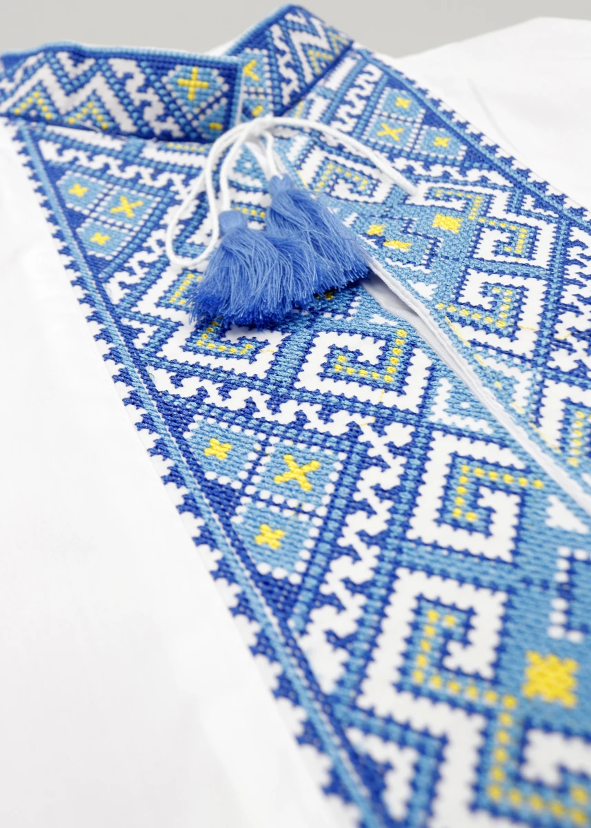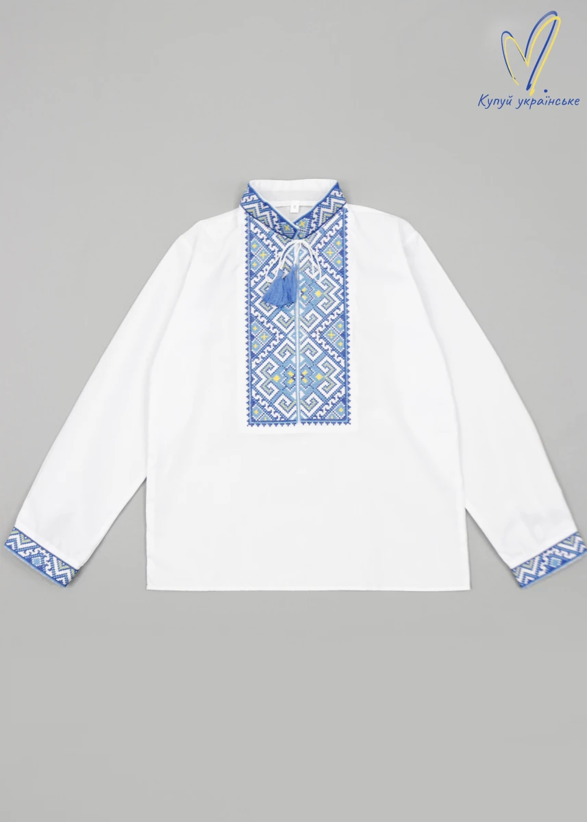 Виробник:Україна. Сезон:демі. Пряма, горловина з V подібним вирізом, оздоблений виріз і горловина+манжет машинною вишивкою. Виріз скріплюється шнурівками з китицями, манжет на кнопці.