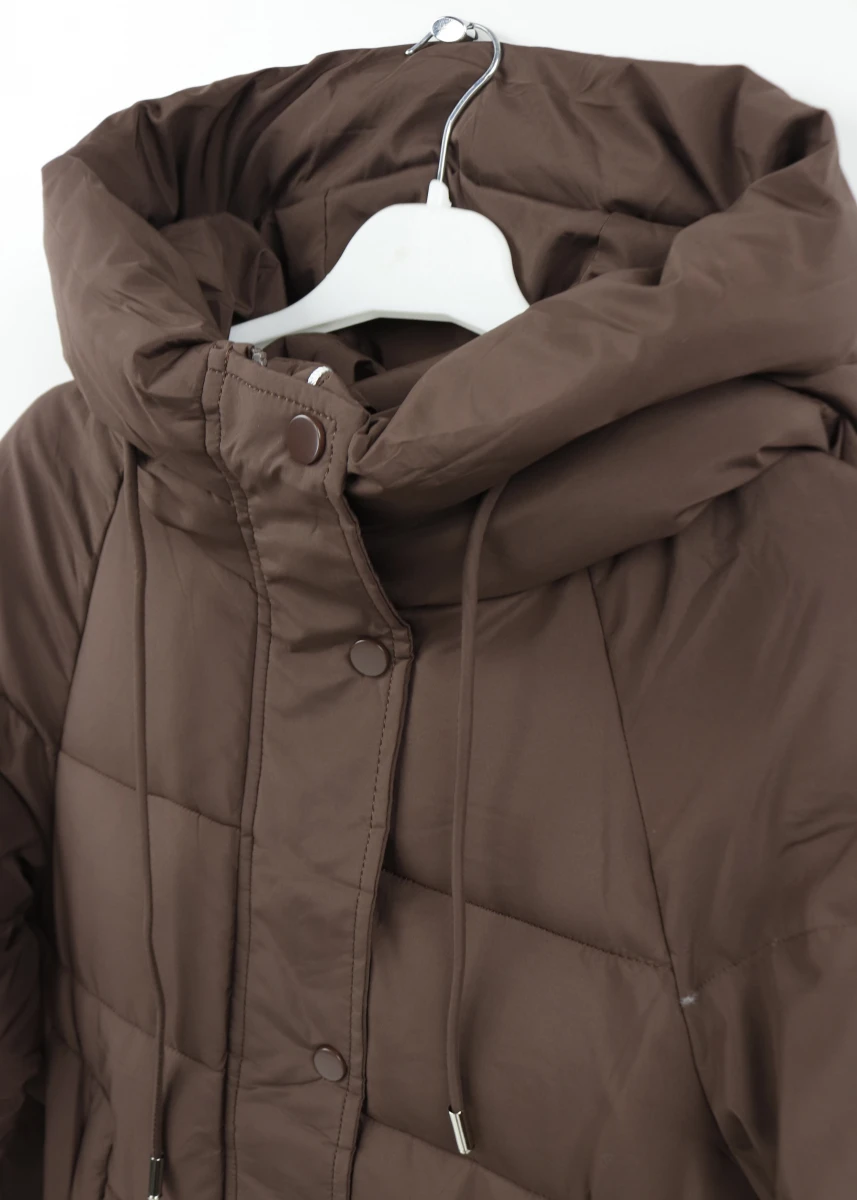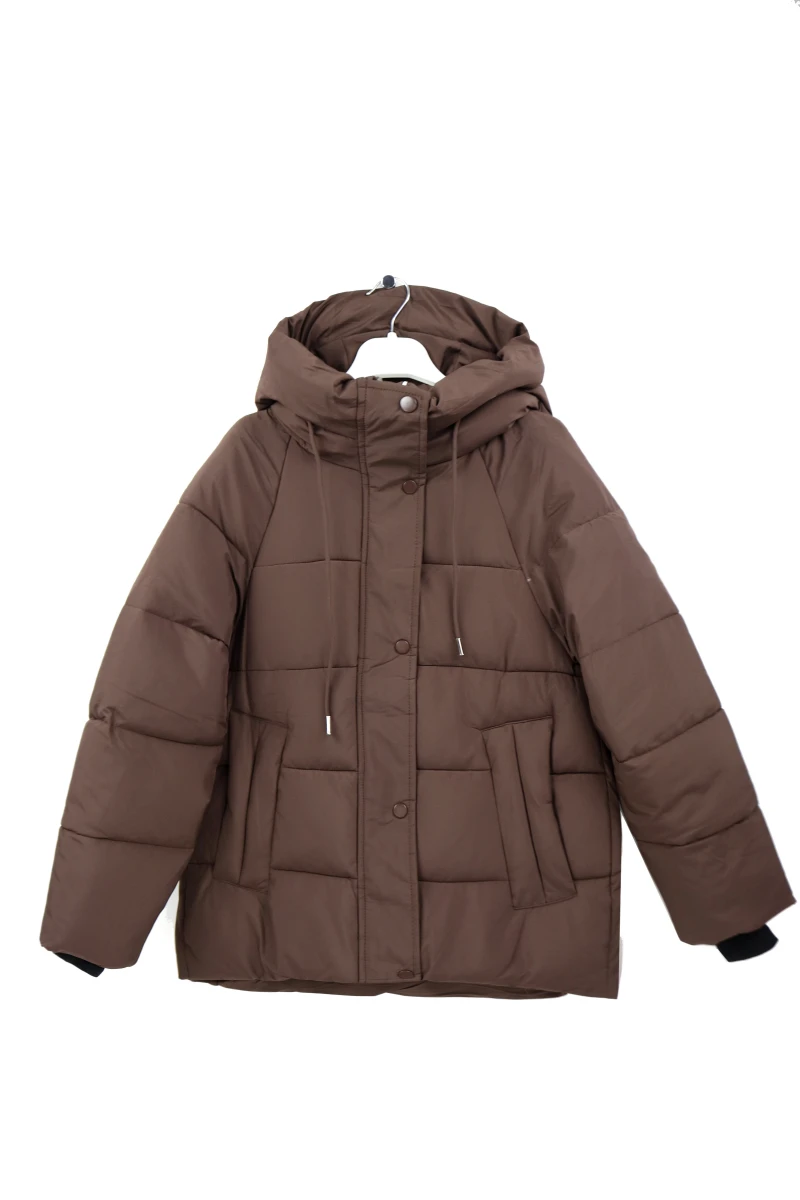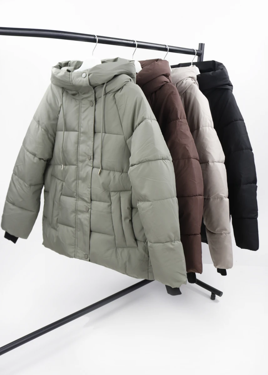Виробник Китай. Сезон зима. Склад 100% поліестер. Однотонна, прошита. Низ стягується резинкою. Капюшон не відстібається. На блискавці та кнопках. Бокові кишені на кнопці. Рукава на манжетах. Ззаду подовжена.