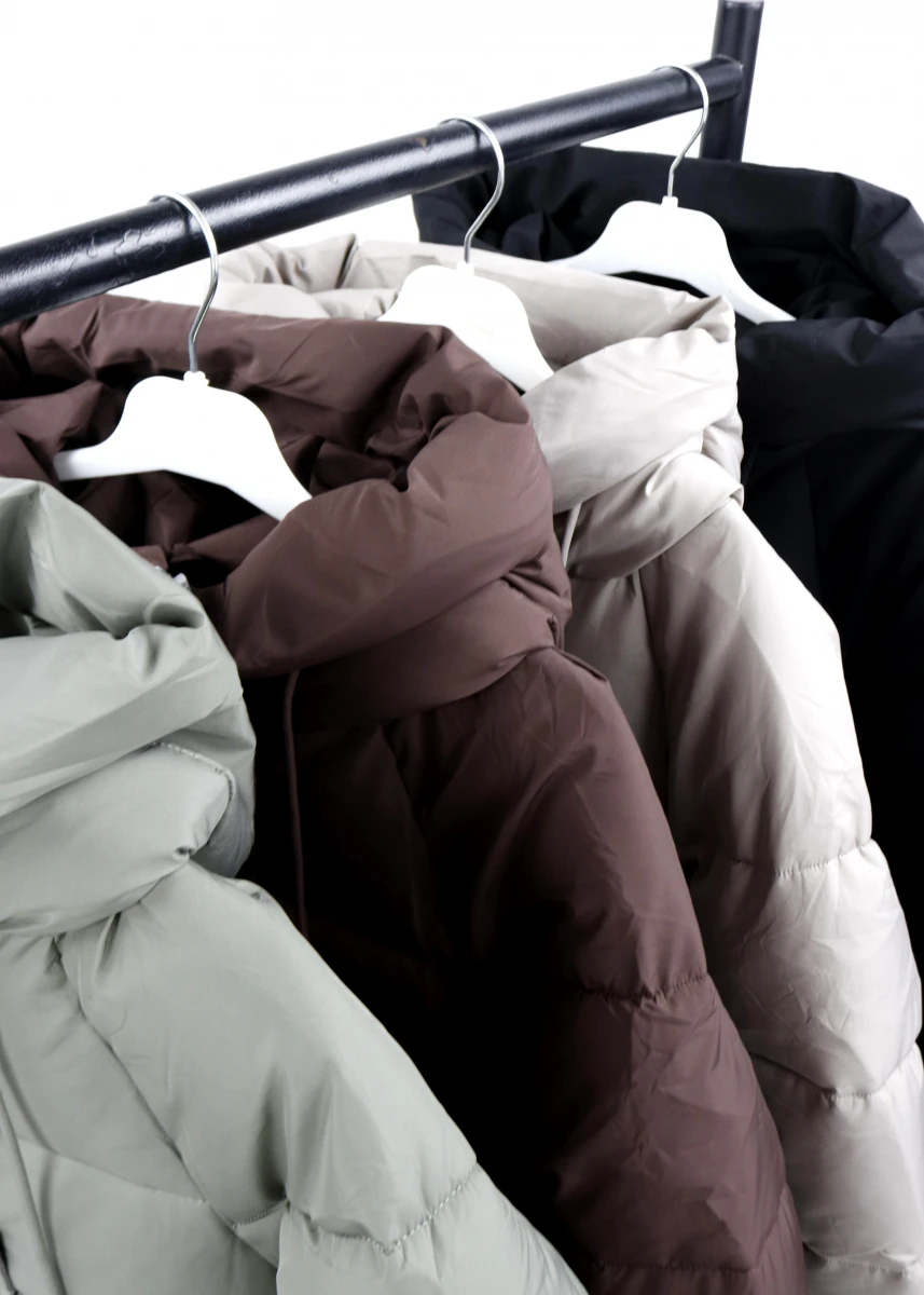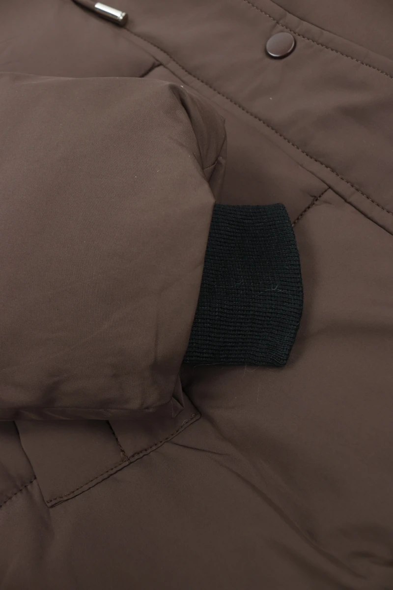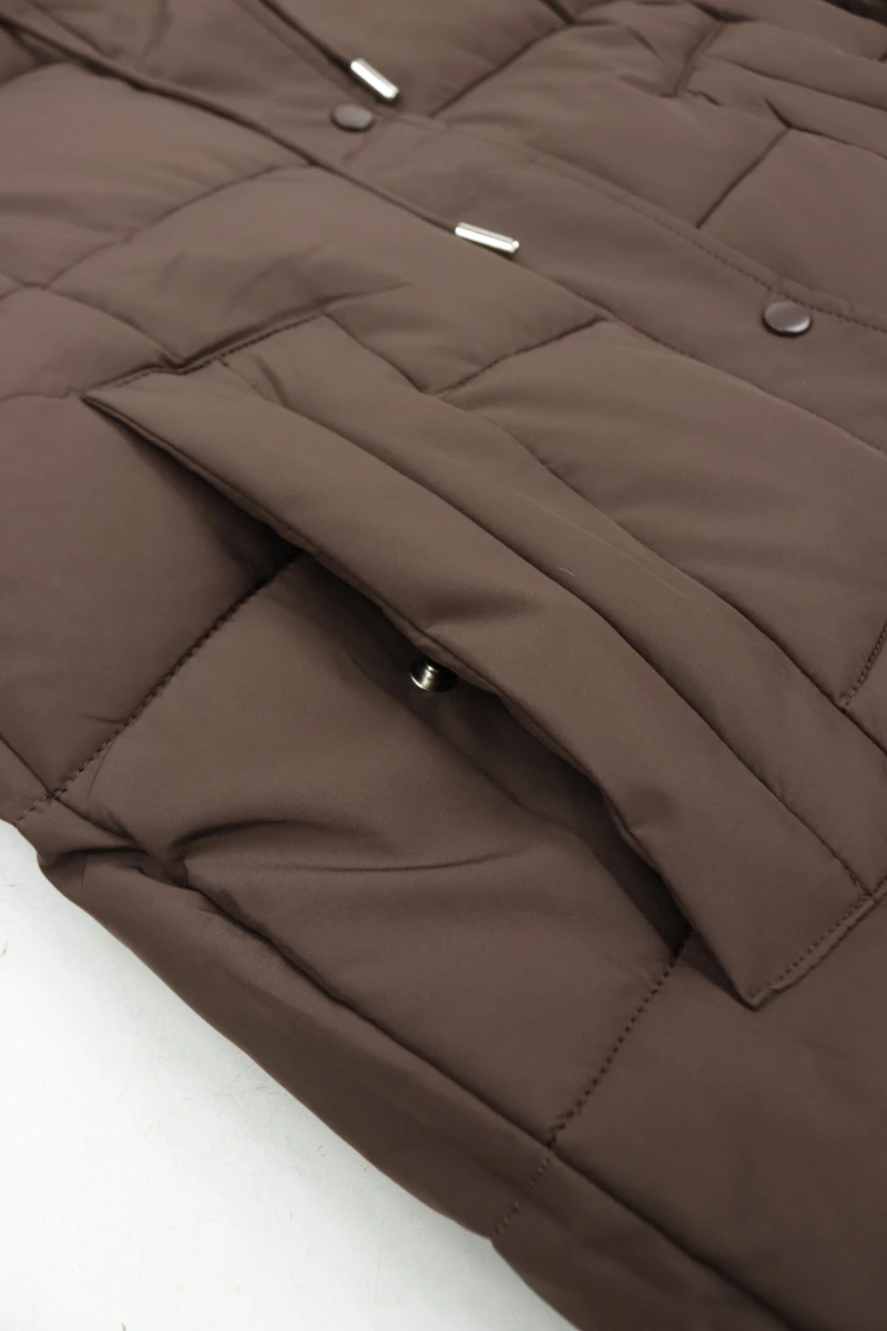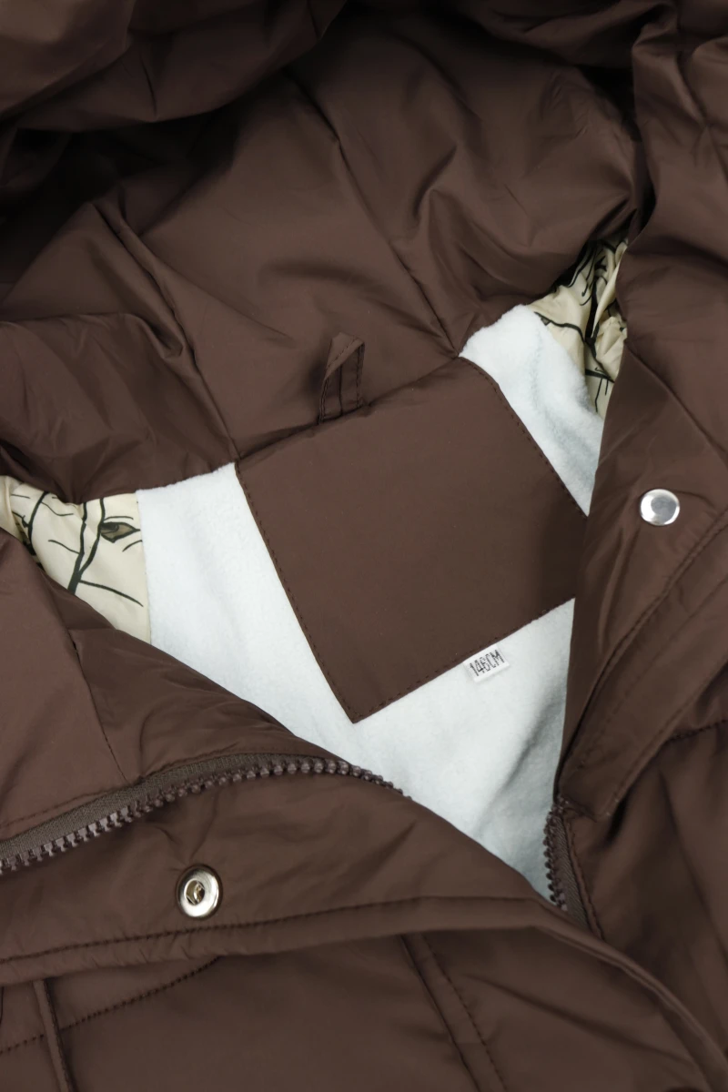 Виробник Китай. Сезон зима. Склад 100% поліестер. Однотонна, прошита. Низ стягується резинкою. Капюшон не відстібається. На блискавці та кнопках. Бокові кишені на кнопці. Рукава на манжетах. Ззаду подовжена.