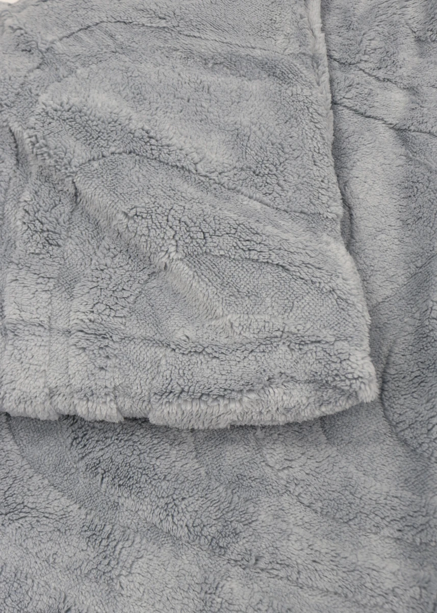 Виробник Китай. Склад:100% поліестер.Двухсторонній плед на штучній овчинці з рельєфними смужками. Розмір 200*230 см.