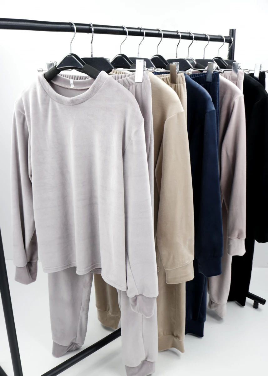 Виробник Україна. Сезон демі. Велюр. Кофта + штани однотонна.Кофта: вільного покрою, кругла горловина, рукава на мажеті. Штани: пояс на резинці, низ на манжеті.
