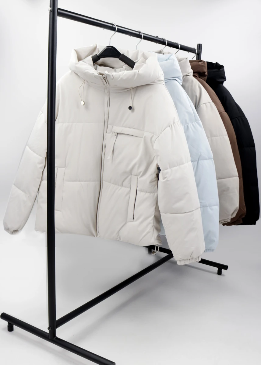 Виробник: Китай. Сезон: зима. Склад:100%поліестер. Однотонна. На блискавці. Прошита. Капюшон суцільний. Кишені скісні на кнопці. Рукава на резинці. Низ регулюється резинкою з фіксаторами.