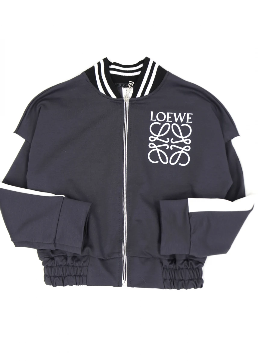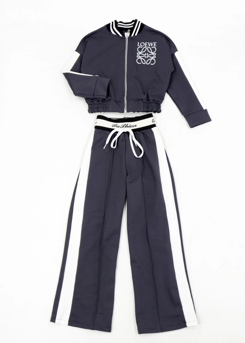 Виробник: Україна. Сезон: демі. Бомбер+штани. Бомбер : Укороченний. На блискавці.Горловина стійка -резинка з двама полосками.Низ резінка Рукава на манжетах .Штани: кльошні на широкій резинці з написом + шнурівка. Без кишень.Спереду прошиті по боках встаки широкі білі смуги .