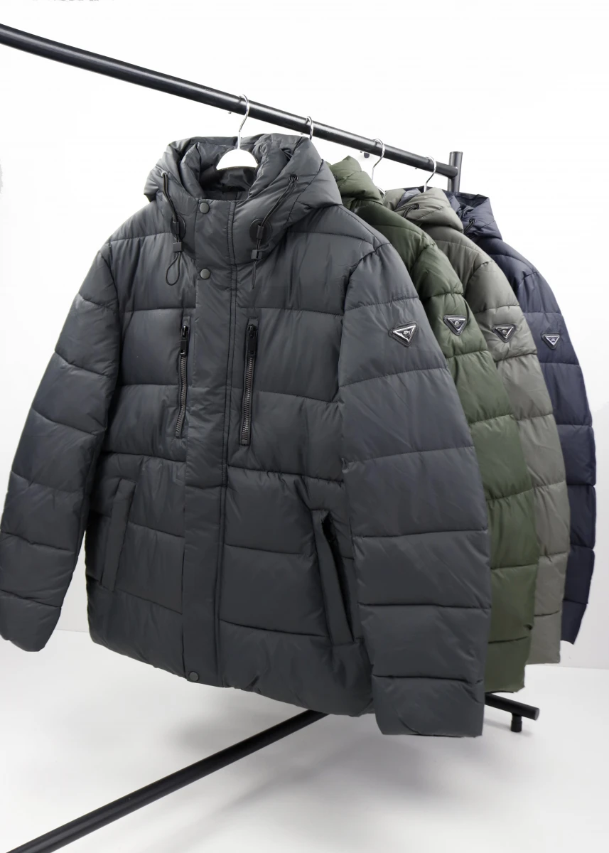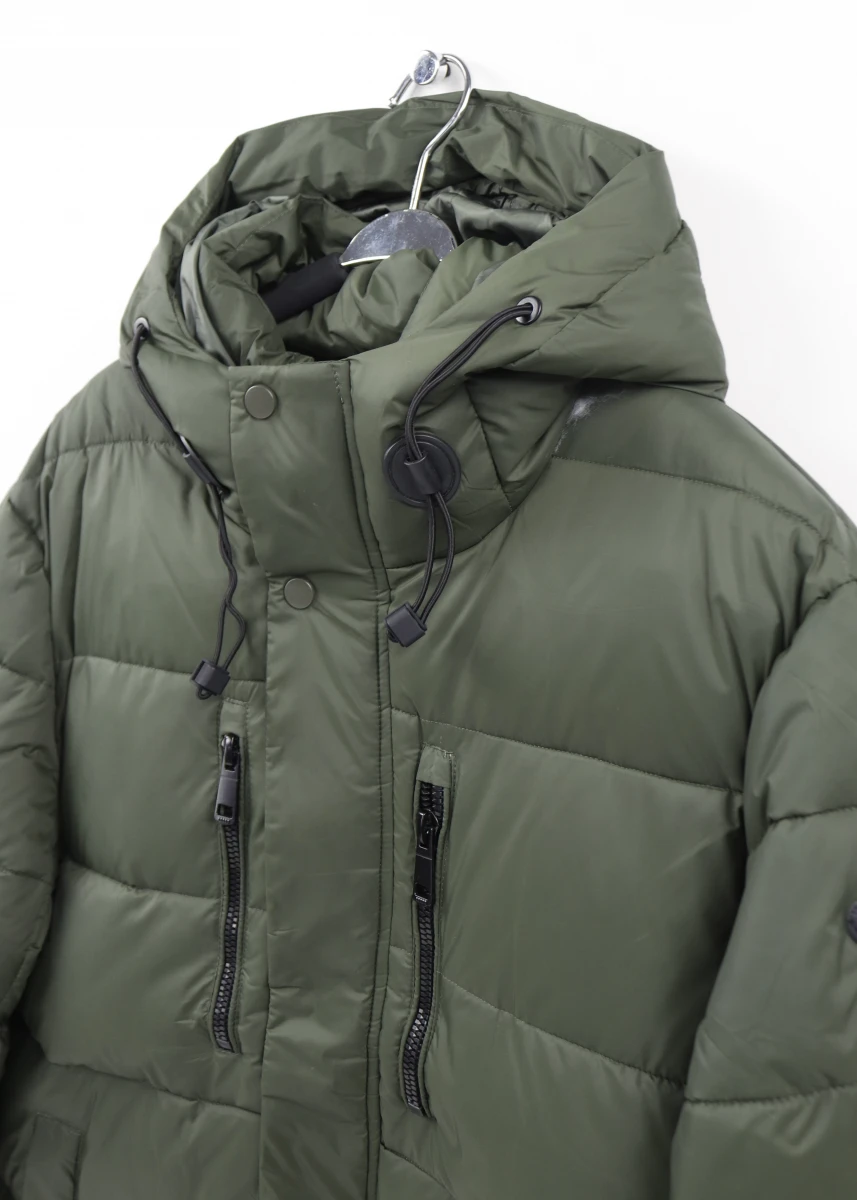 Виробник Китай. Сезон зима. Тканина: поліестер. Однотонна. Утеплювач синтепон. Куртка пряма на блискавці+ кнопки . Стійка + капюшоном стягується на резинці.В середині дві кишені на блискаці.