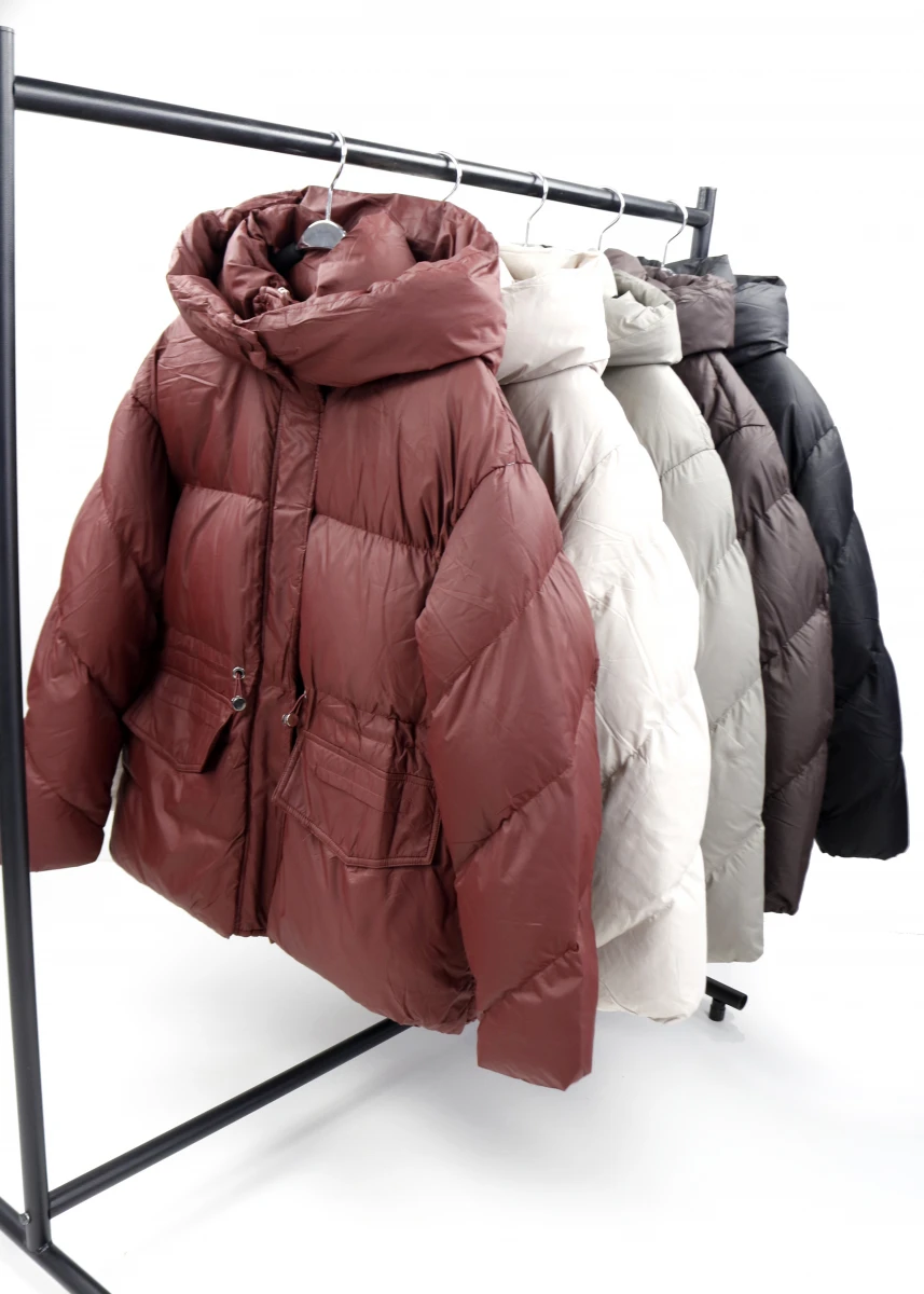 Виробник: Китай. Сезон: зима. Склад:100%поліестер. Однотонна. Горизонтально прошита. По талії та низ стягується резинкою. Капюшон на блискавці та кнопках. Кишені з накидним верхом на кнопці.