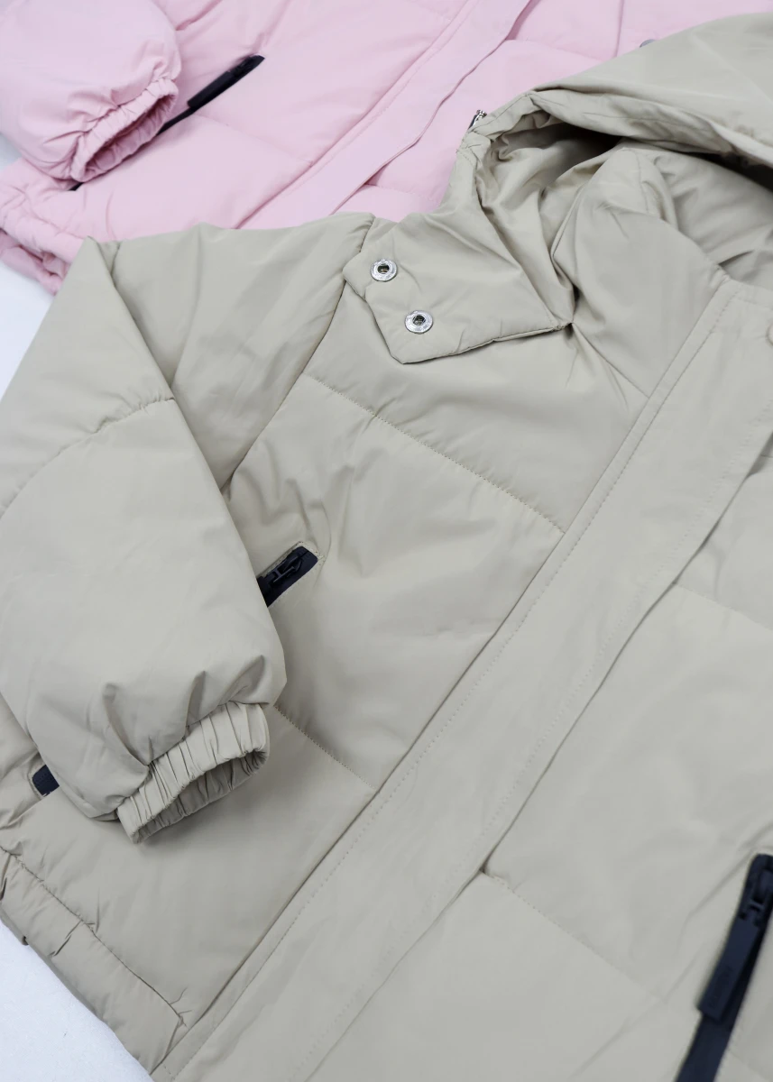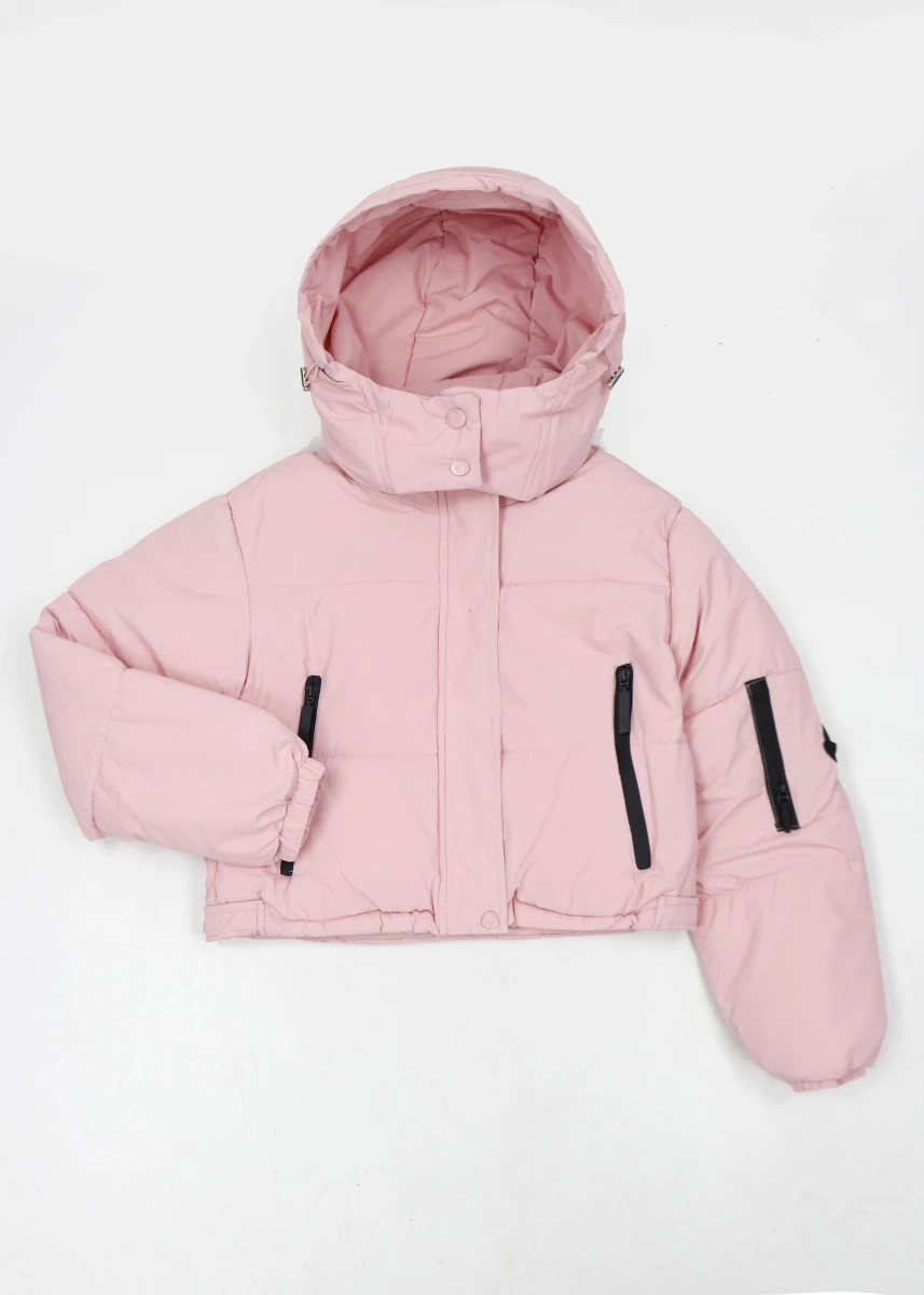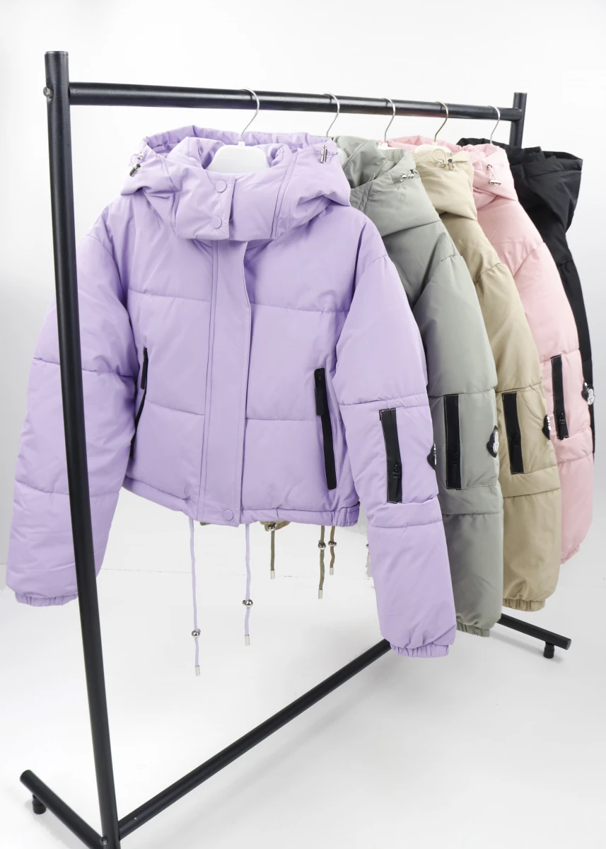 Виробник Китай. Сезон зима.Склад: 65%бавовна ,30% поліестер 5 % спандекс. Однотонна.Укорочена.Застібається на блискавку та кнопки. Капюшон суцільний та кнопках. Кишені на блискавці . Рукава на резинці.