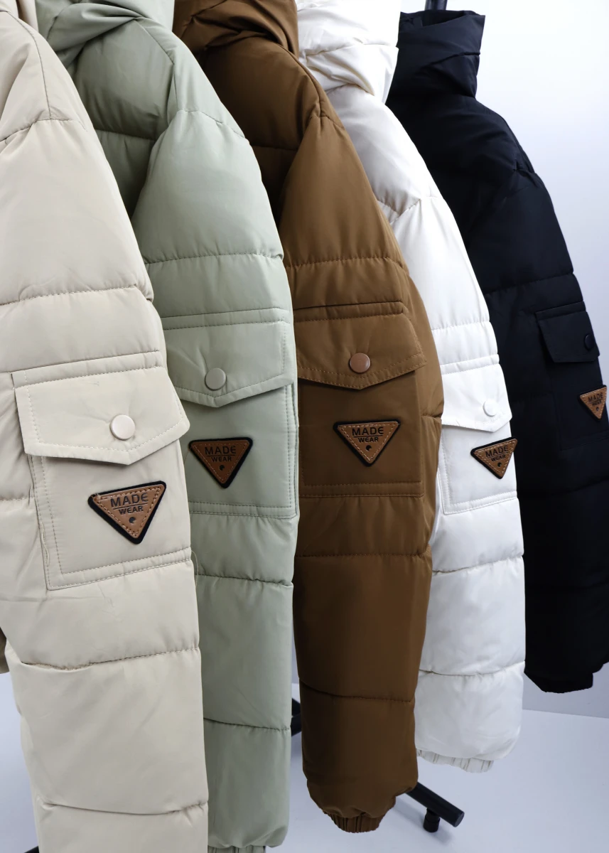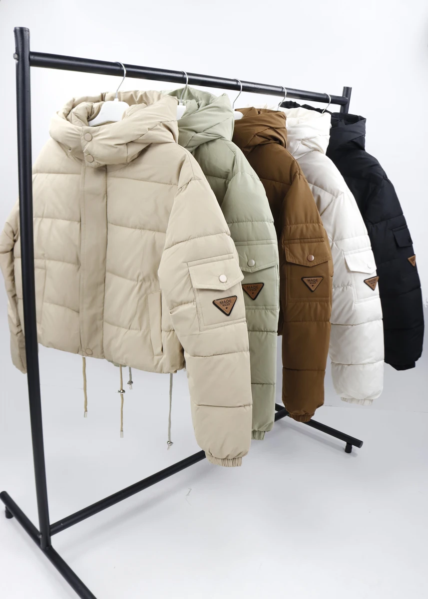 Виробник Китай. Сезон зима.Однотонна.Укорочена.Застібається на блискавку та кнопки. Капюшон суцільний та кнопках. Скісні кишені . Рукава на резинці.