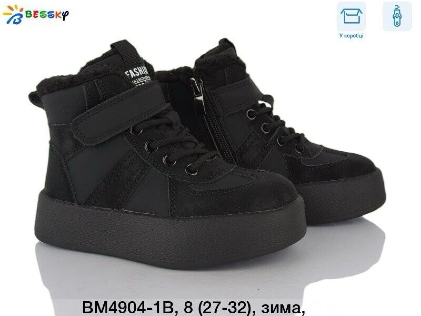 Виробник Китай. Сезон зима. Матеріал верху штучний замш та екошкіра. Матеріал підкладки та устілки штучне хутро. ПВХ підошва. Модель на застібці блискавці, липучці та фальш шнурівці. Петелька на заднику.