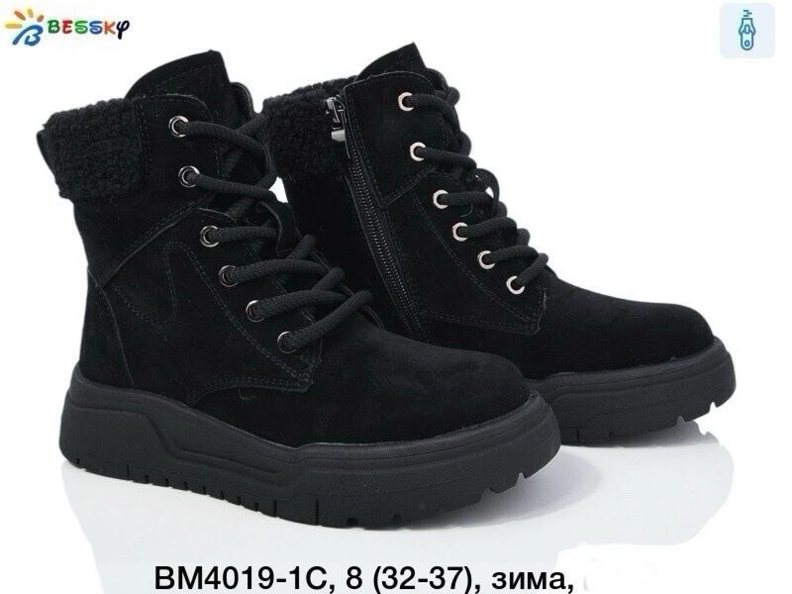 Виробник Китай. Сезон зима. Матеріал верху екошкіа. Матеріал підкладки штучне хутро. Матеріал устілки штучне хутро. ПВХ підошва. Модель на застібці блискавці, застібці липучці та фальш шнурівці.
