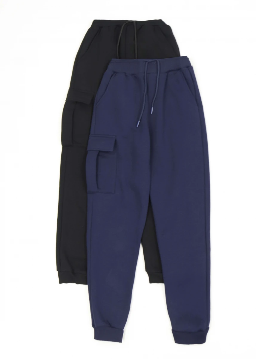Виробник: Туреччина. Сезон:зима. Склад: 100% бавовна. Однотонні. Пояс на резинці+шнурівки. Кишені бічні. На правій колошві накладна кишеня з накидним верхом.Колошви на манжетах.