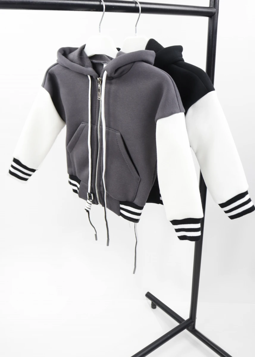 Виробник: Україна. Сезон: зима. Склад: 70% бавовна, 30% поліестер. На блискавці. З капюшоном + стягуюча шнурівка. Рукава та низ на манжеті. Дві нашивні кишені.