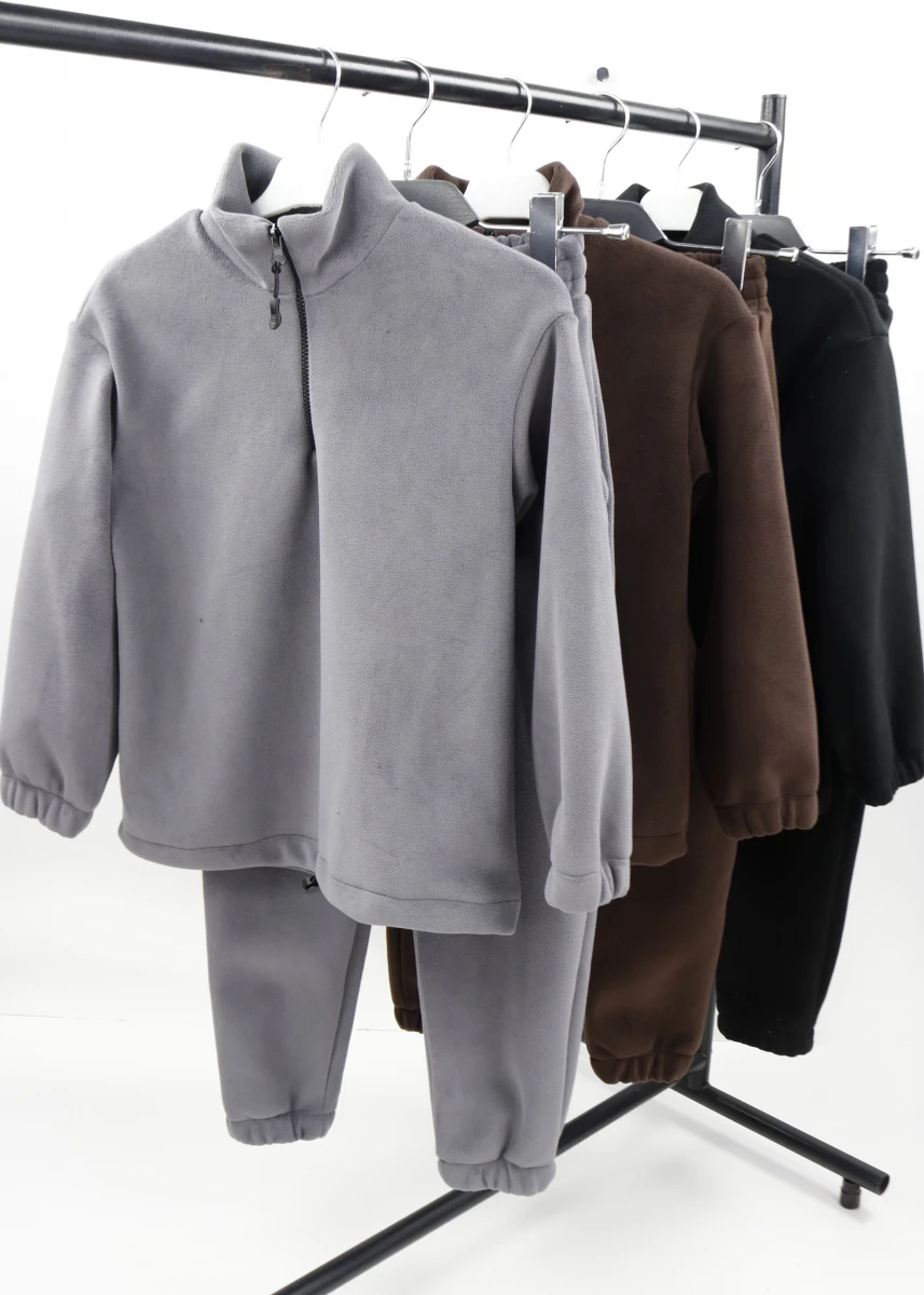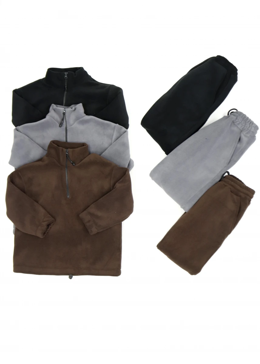 Виробник: Україна. Сезон: зима. Однотонний. Флісовий. Кофта + штани. Кофта: Комір стійка ,до середини на блискавці. Пряма, рукава на резинці низ стягується на резінку з фіксатором . Штани: пояс резинка+ шнурок низ на резинці , дві скісні кишені .