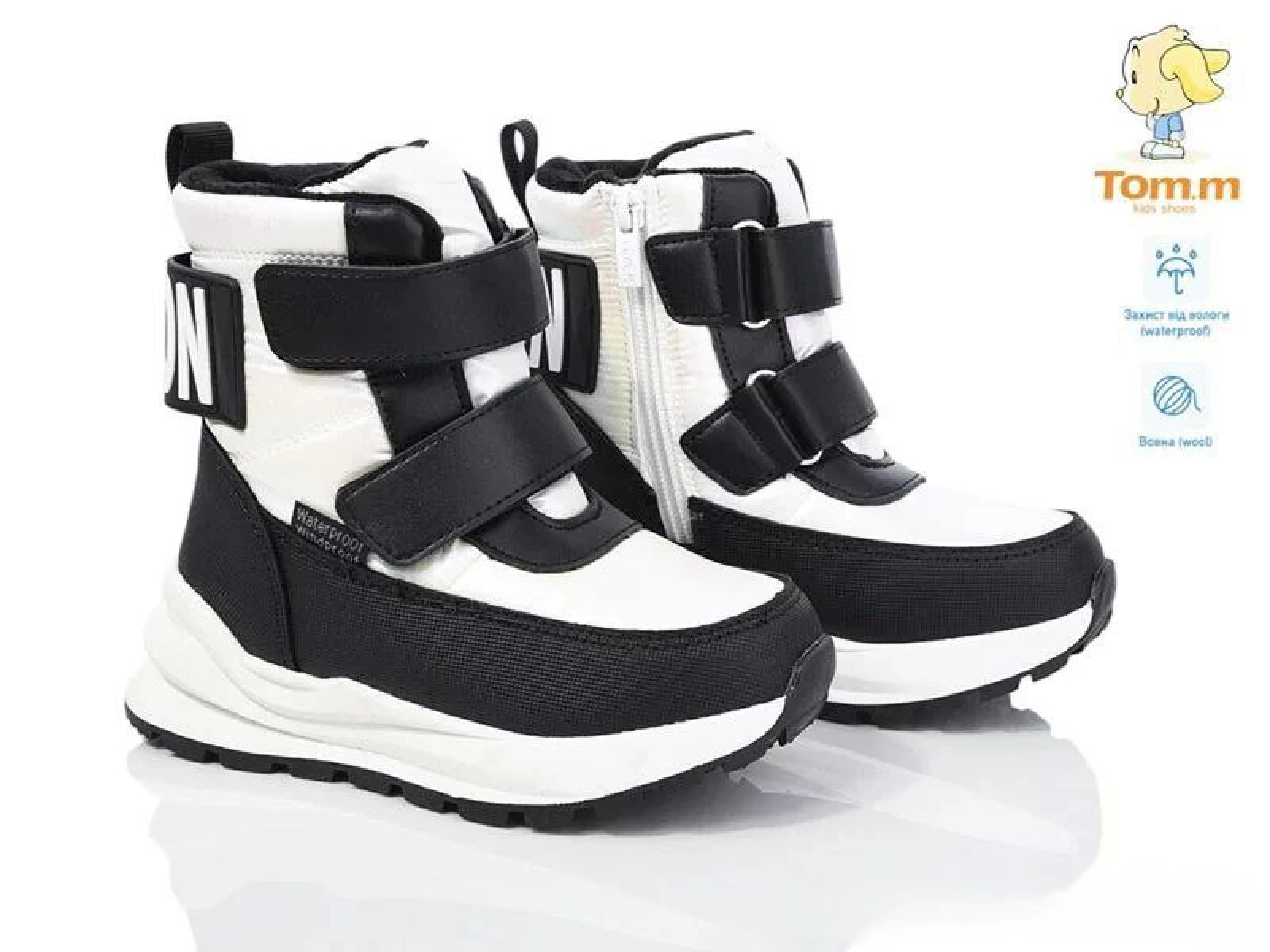 Виробник Китай. Сезон зима. Матеріал верху штучний замш та непромокний текстиль. Матеріал підкладки та устілки штучне хутро. ПВХ підошва. Модель на застібці блискавці та двох застібках липучках.