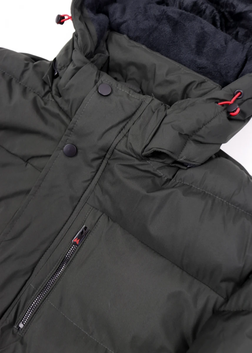 Виробник: Китай. Сезон: зима. Однотонна. На блискавці з накидним верхом. Відстібний капюшон. Рукава манжет резинка . Ліворуч вертикальна кишеня на блискавці та дві приховані на блискавці.