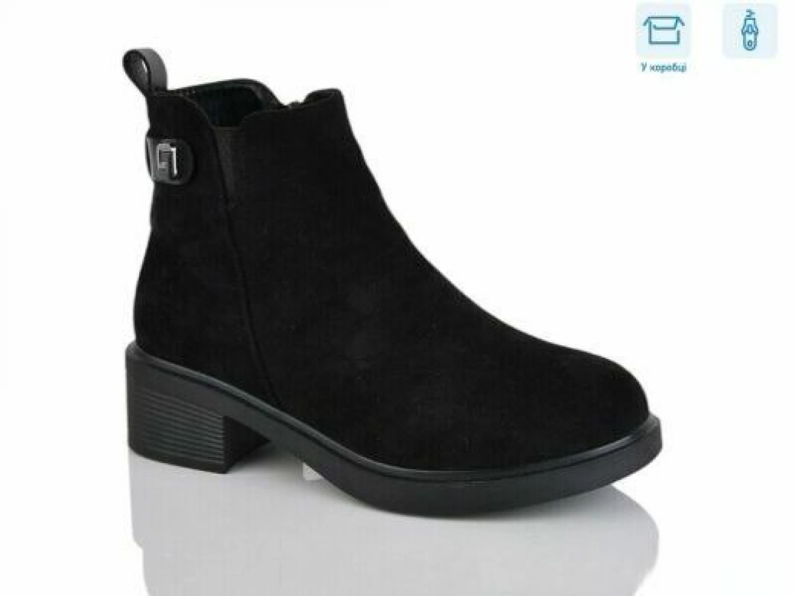 Виробник Китай. Сезон зима. Матеріал верху штучний замш. Матеріал підкладки та устілки штучне хутро. Модель на застібці блискавці. Петелька на заднику.
