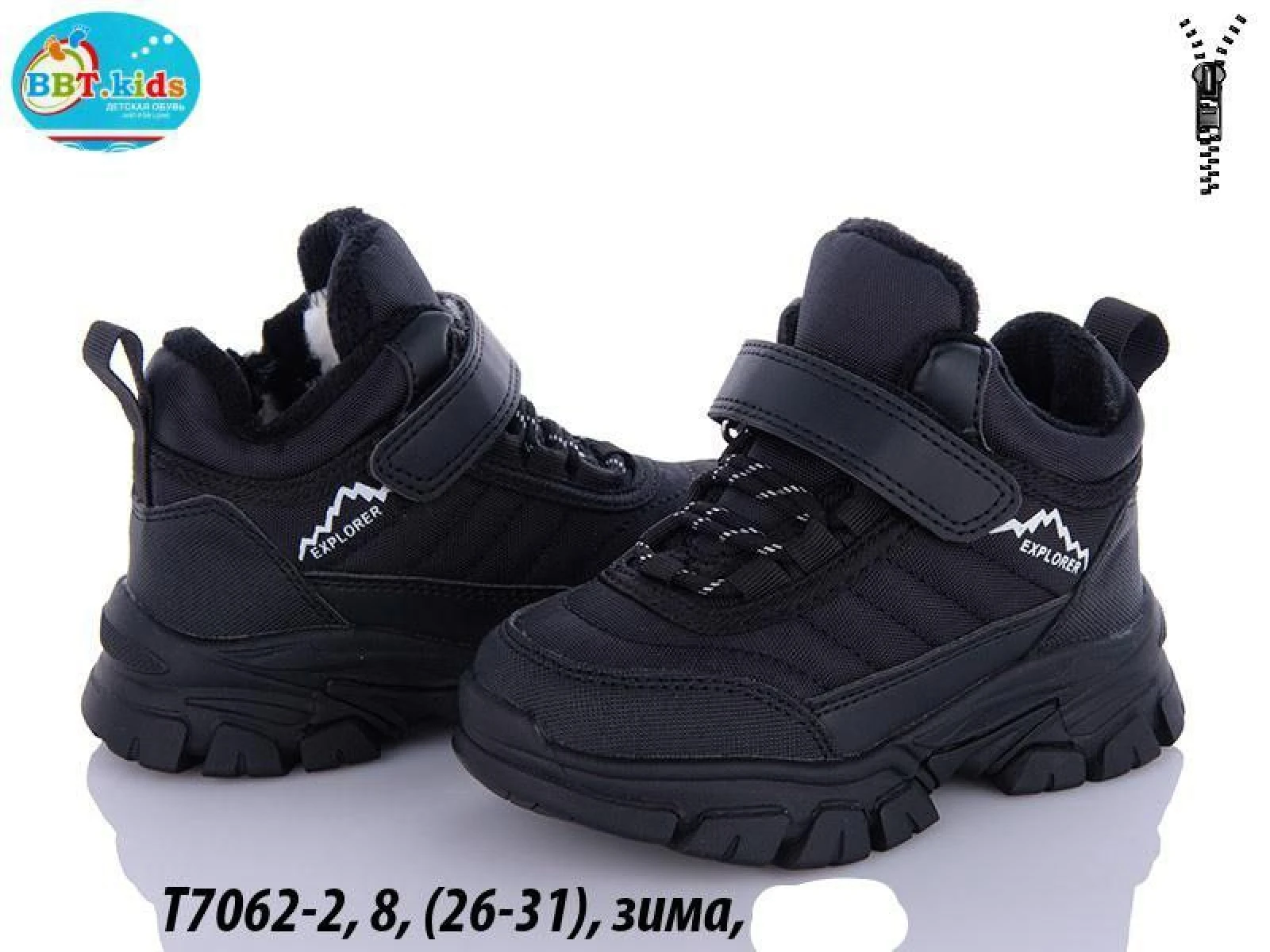Виробник Китай. Сезон зима. Матеріал верху термотекстиль та екошкіра. Матеріал устілки штучне хутро. Матеріал підкладки штучне хутро. ПВХ підошва. Модель на застібці блискавці, застібці липучці та фальш шнурівці. Петелька на заднику.