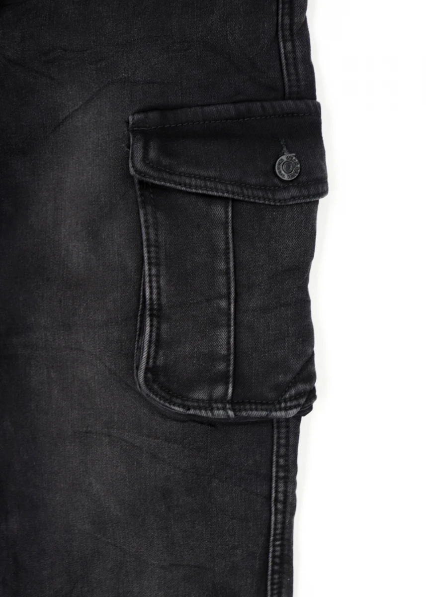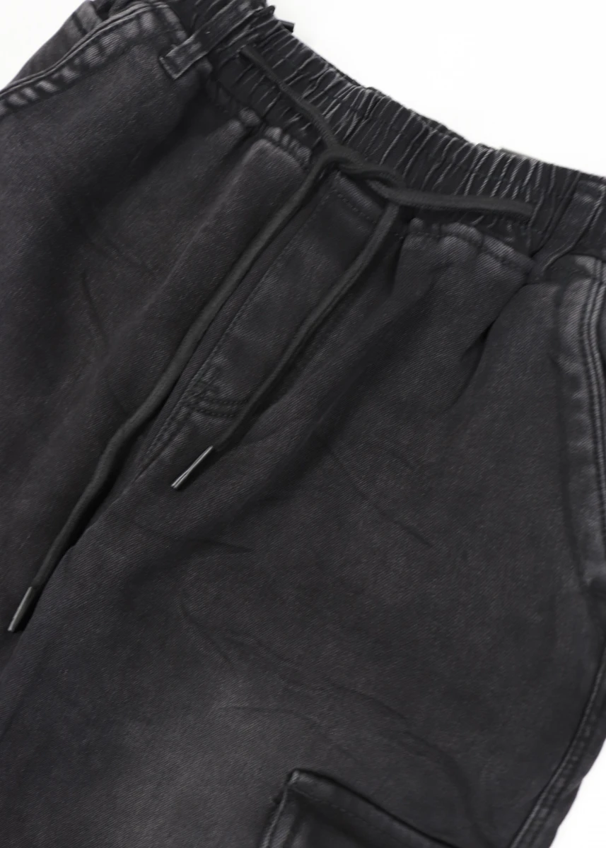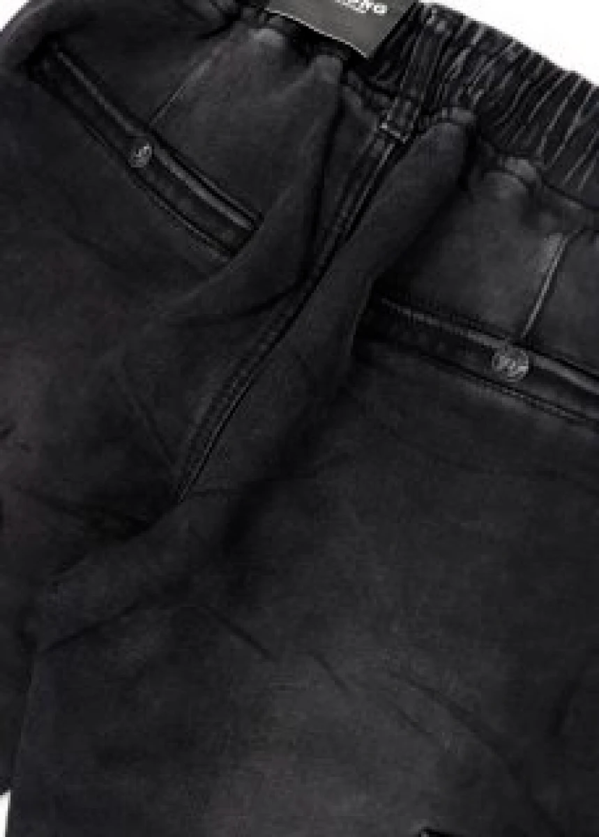 Виробник: Китай. Сезон: єврозима. Склад: 68% котон, 30% поліестер, 2% спандекс. Пояс резинка+шнурівки. Імітація ширинки. Кишені зверху на колошвах по боках накладні кишені з накидним верхом на гудзику, ззаду імітовані кишені з гудзиком. Низ на резинці. Потерті.